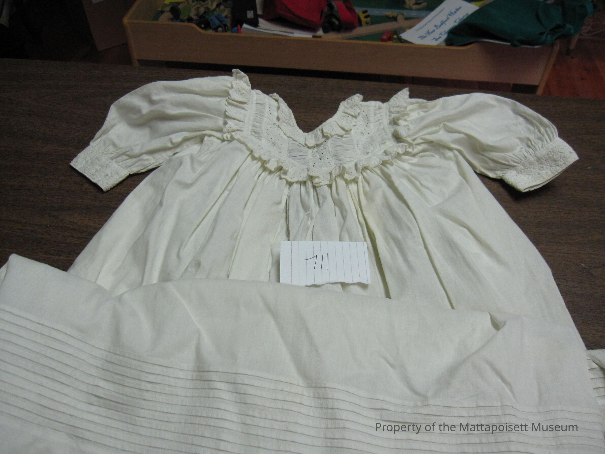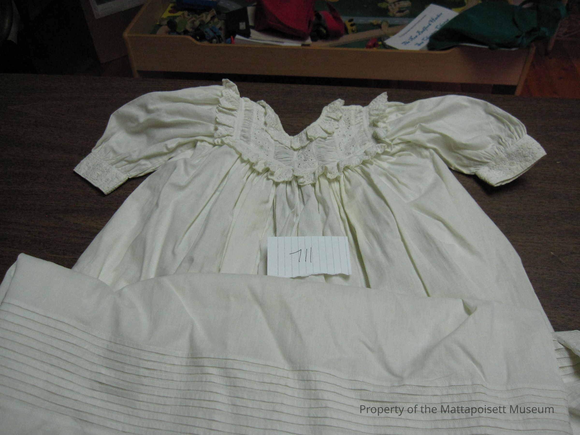 Notes: Notecard: Child's christening dress. White cotton.