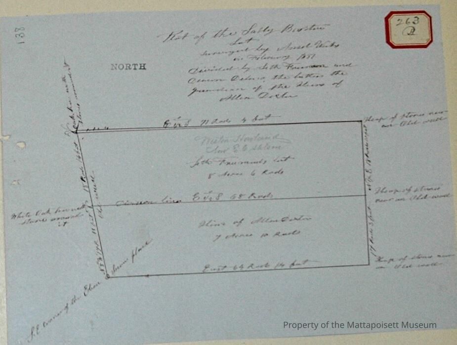 Seth Freeman lot at 8 acres and 6 rods. Heirs or Allen Dexter at 7 acres and 10 rods. Eben Snow, abutter. Later Weston Howland, then E. C. StetsonAcquisition