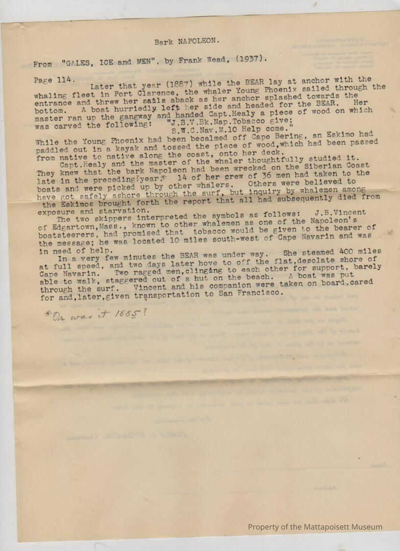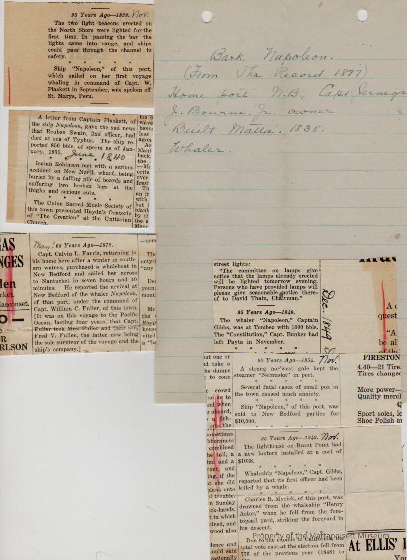 Typed & handwritten notes and newspaper articles about Bark Napolean.Collection