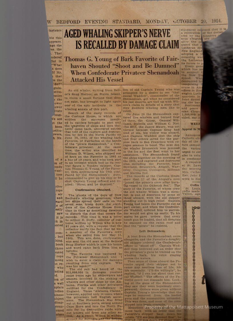 Newspaper article about Bark Favorite and its attack by CSS Shenandoah.Collection