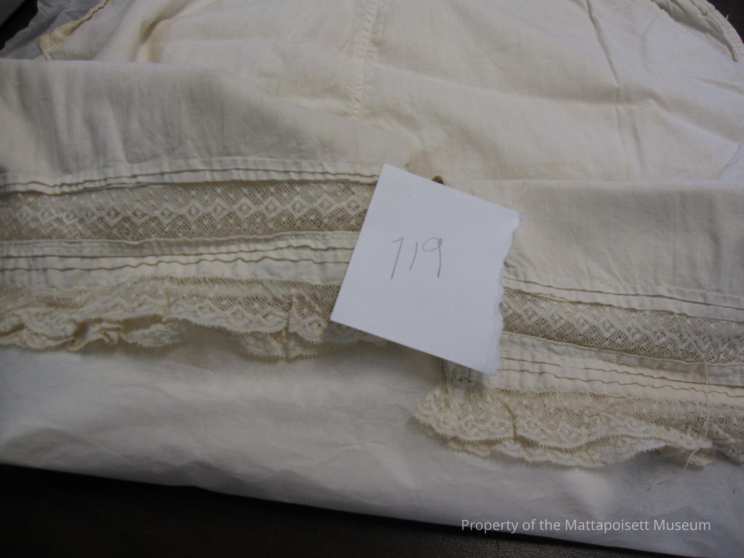 Notes: Notecard: Pantalets, white cotton and lace Status: OK