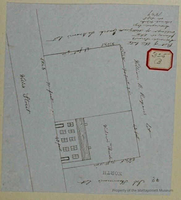 Plot of the late Samuel Snow’s place in the village of Mattapoisett. Surveyed by Ansel Weeks in September 1849. William B. Rogers, Enoch LeBaron’s lot, Willis Street, Job Sherman’s lot, Widow’s Thirds, surrounding.Acquisition