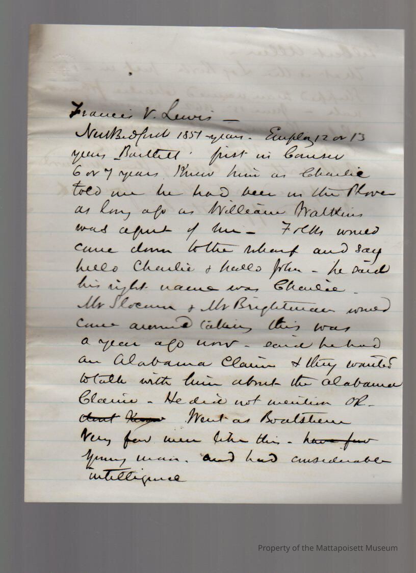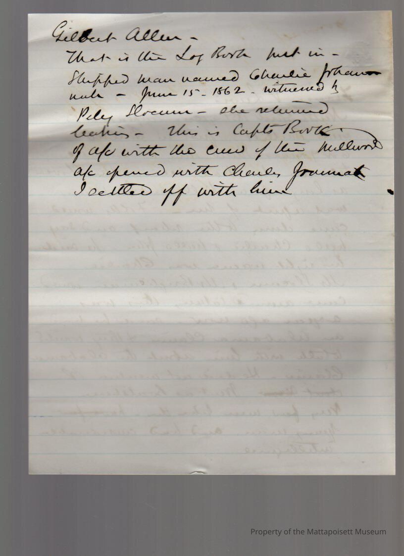 Handwritten notes, probably by Lemuel LeBaron Holmes, conversations with Francis B. Lewis and Gilbert Allen.Collection