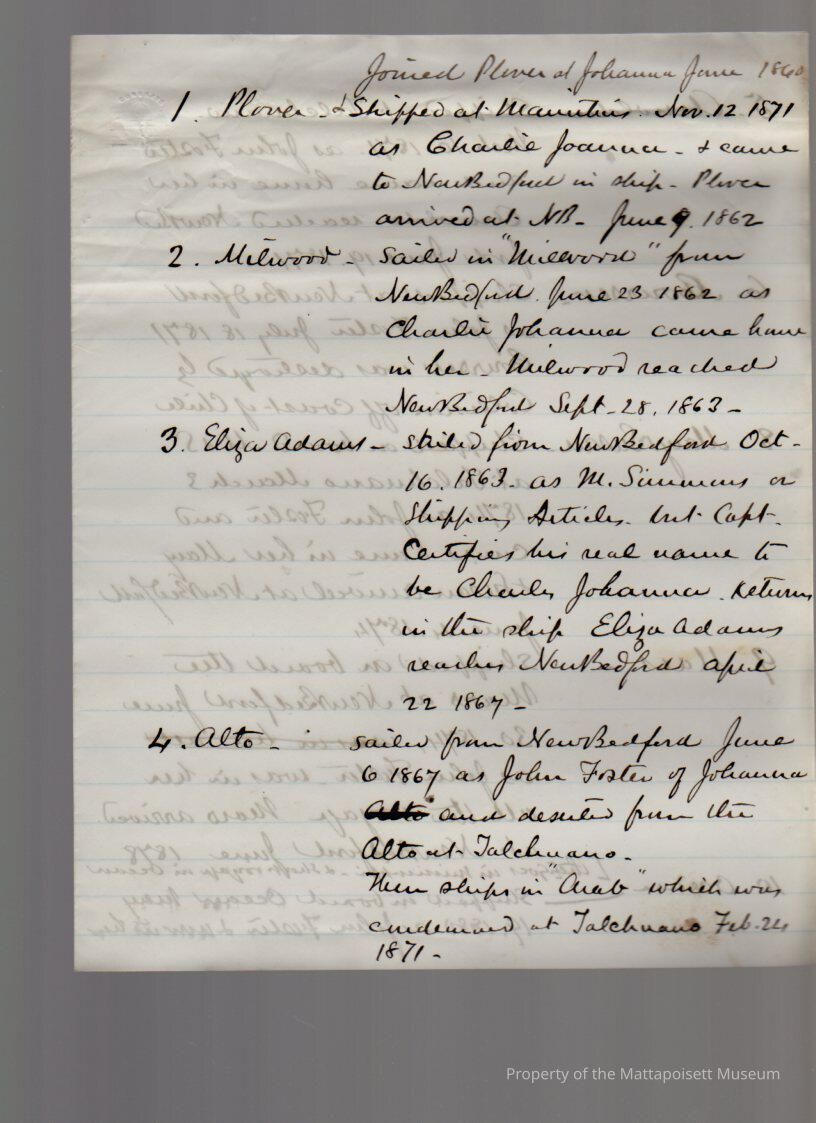 Handwritten list of ten vessels referring to either Charles Foster (Charles Johanna) or John Foster.Collection