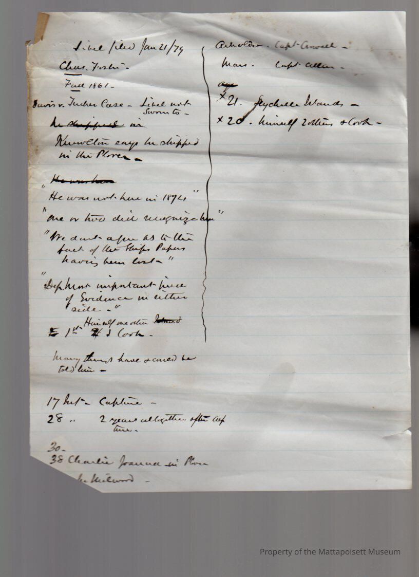 Handwritten timeline, probably by Lemuel LeBaron Holmes of Charles Foster.Collection