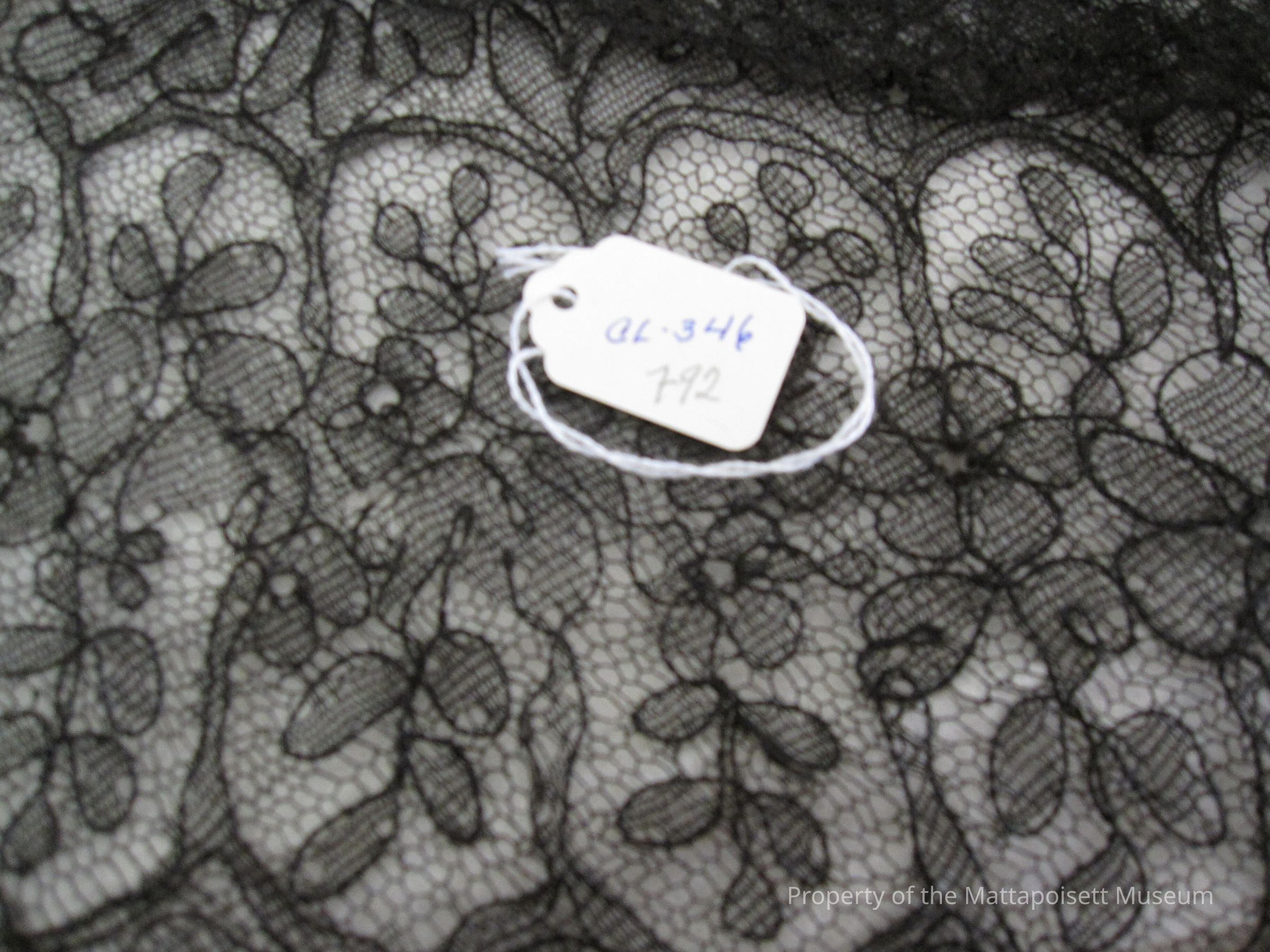 Notes: Notecard: Black lace mantilla. Floral lace pattern Status: OK