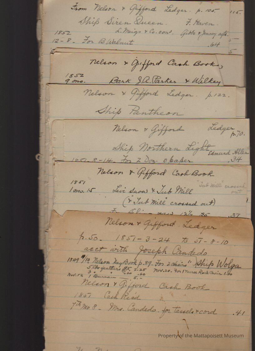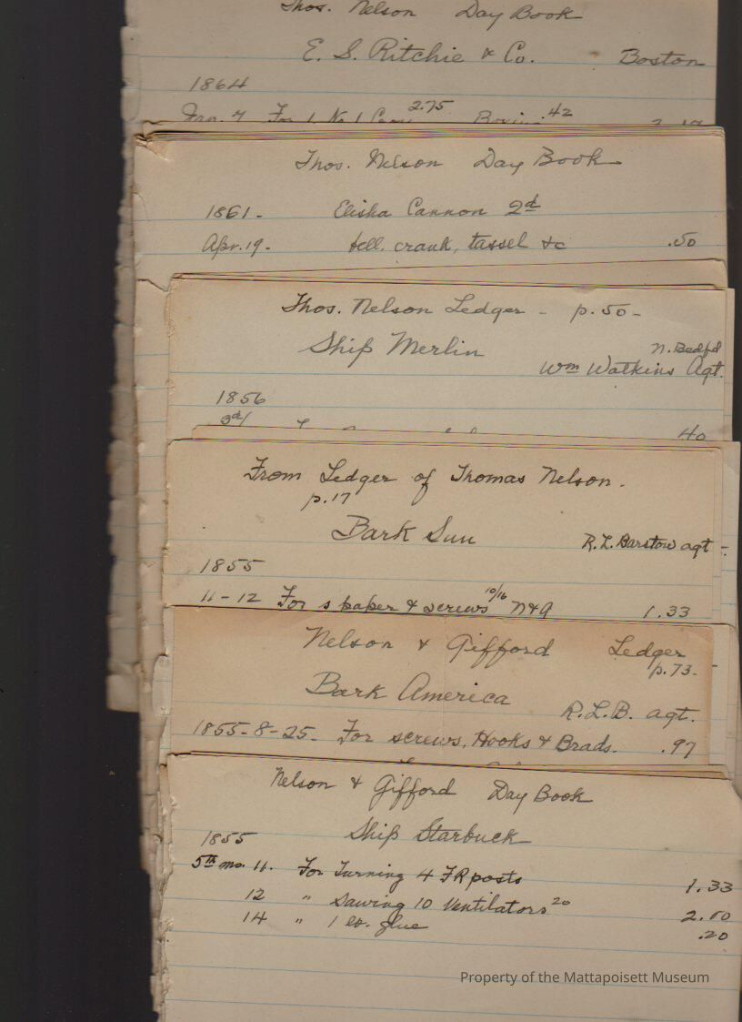 Handwritten copies/transcription from Thomas Nelson's day book and Nelson & Gifford cash book and ledger.Collection