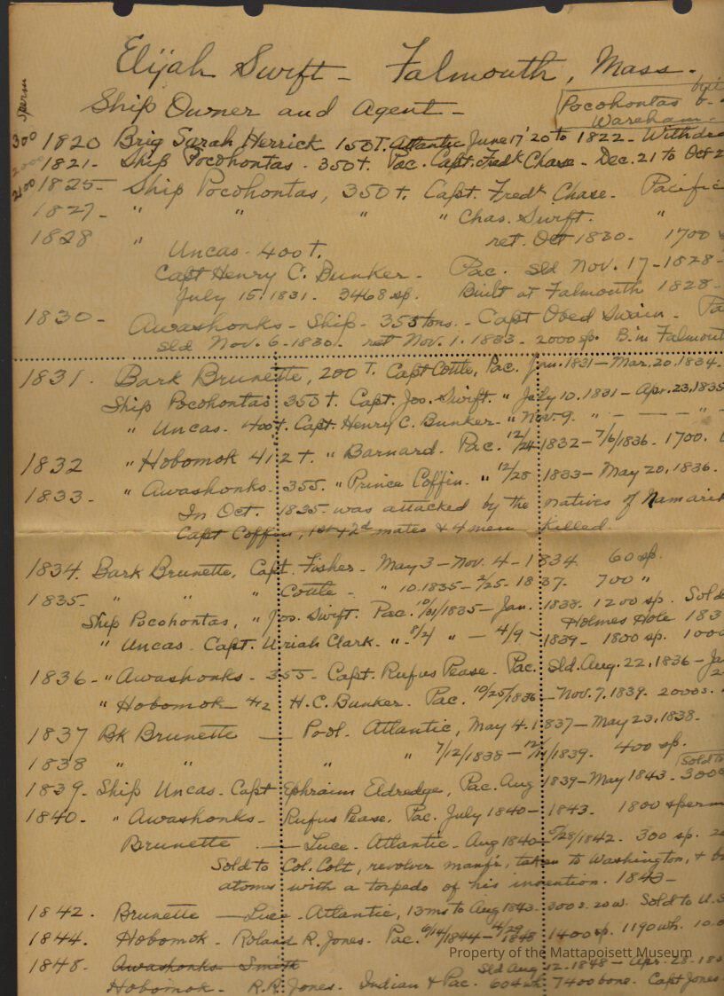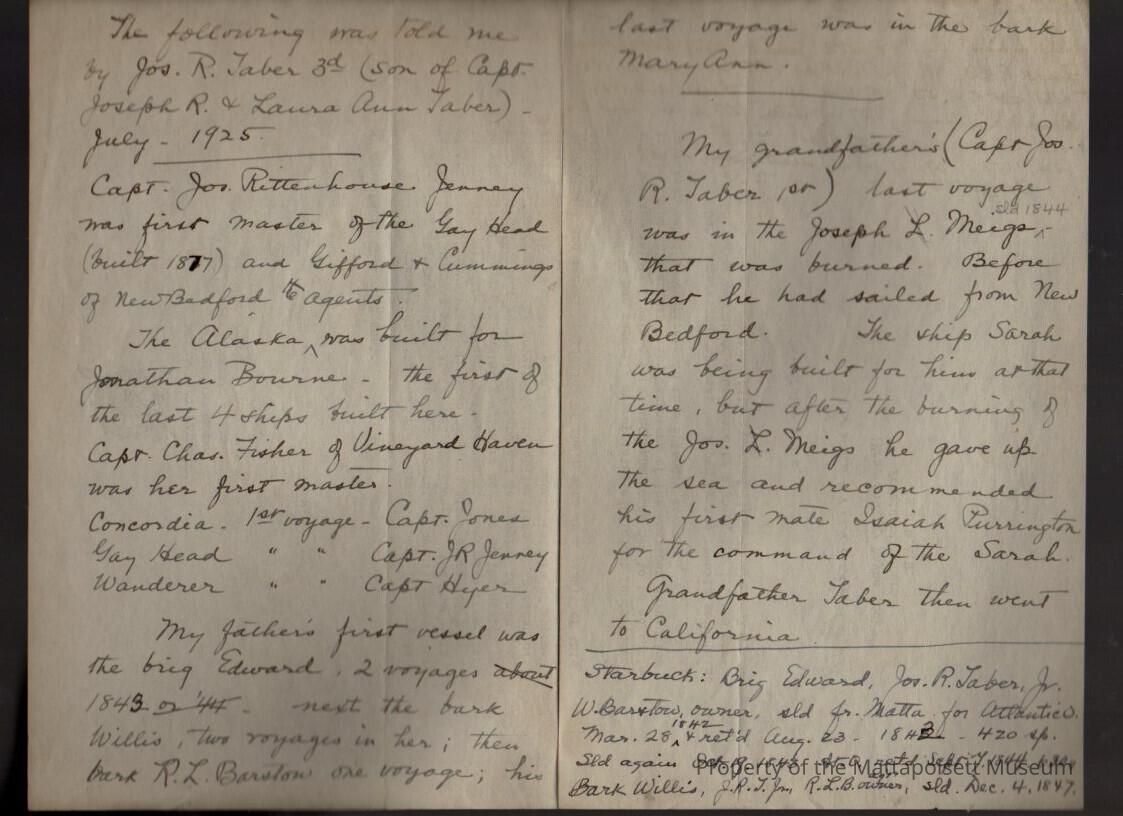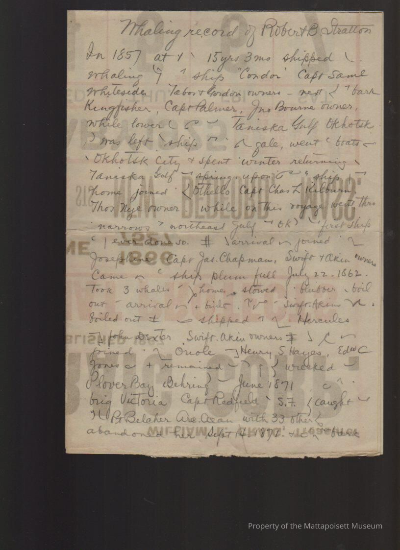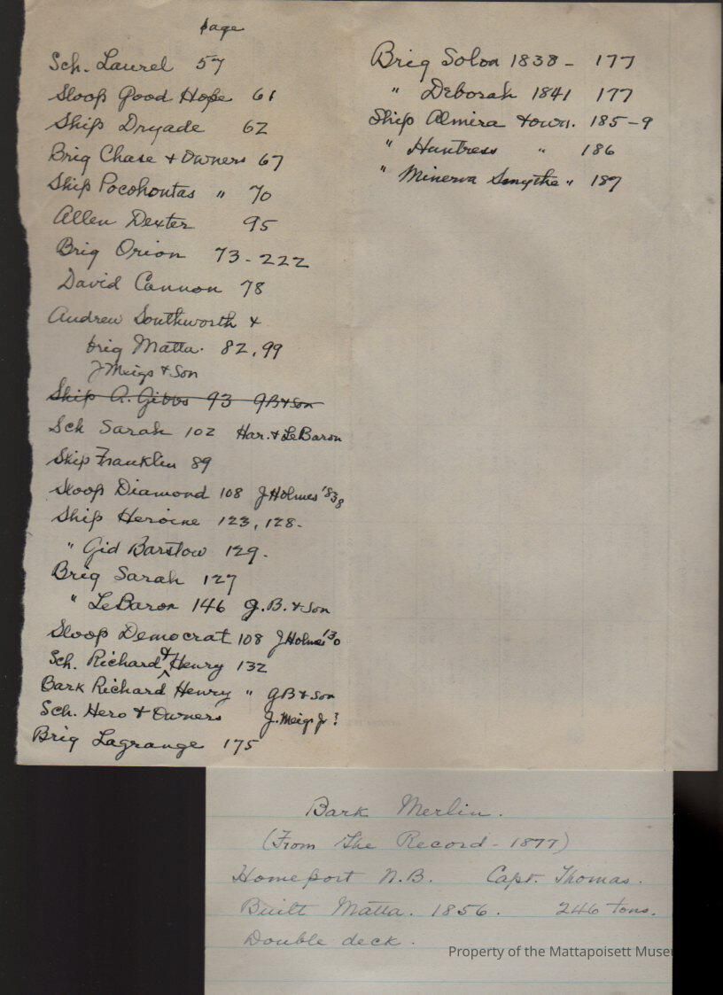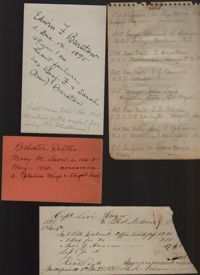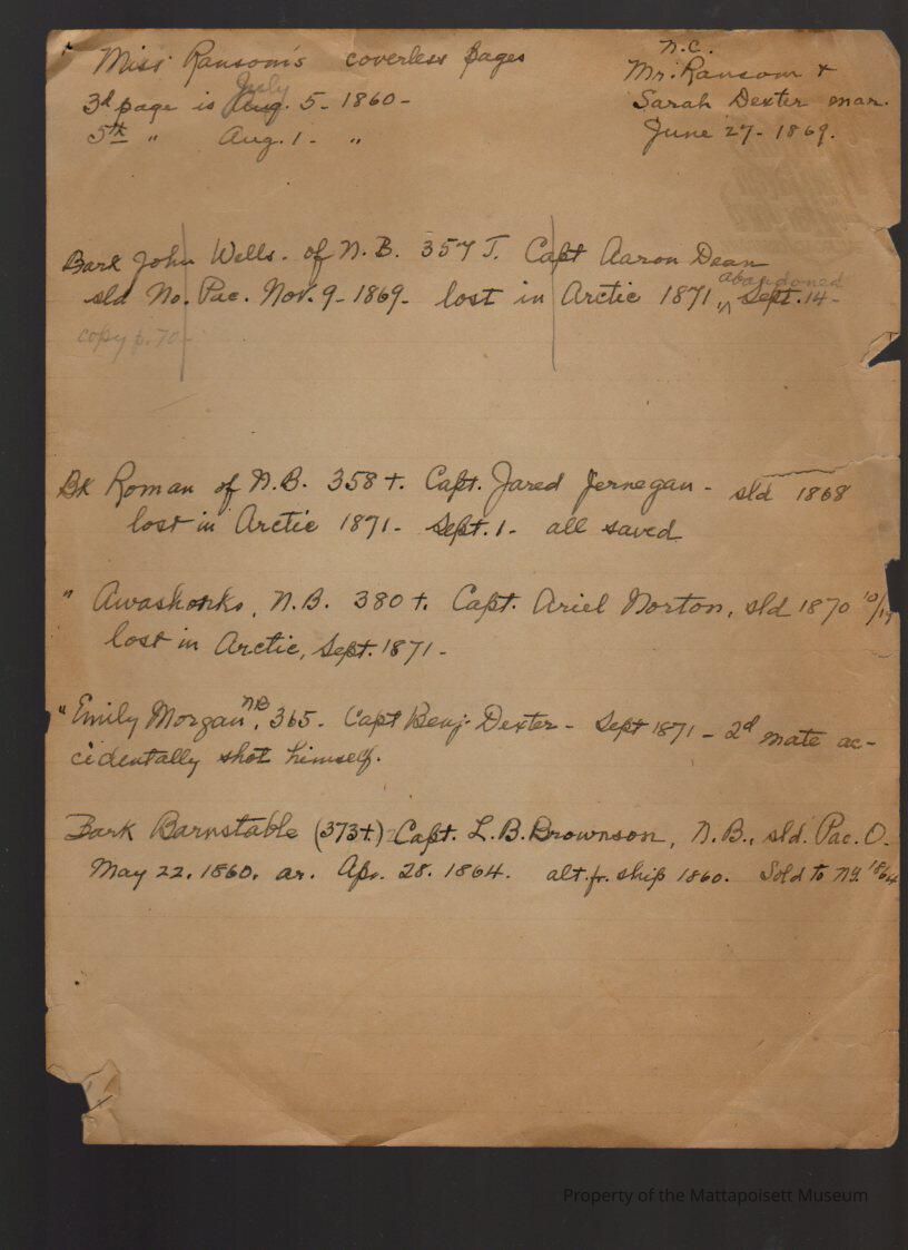 Handwritten notes, scraps of paper, excerpts, lists, copies, quotes, clippings pertaining to whaling, whaleships and persons associated with same.Collection