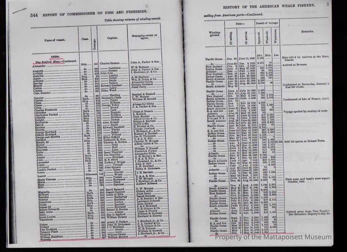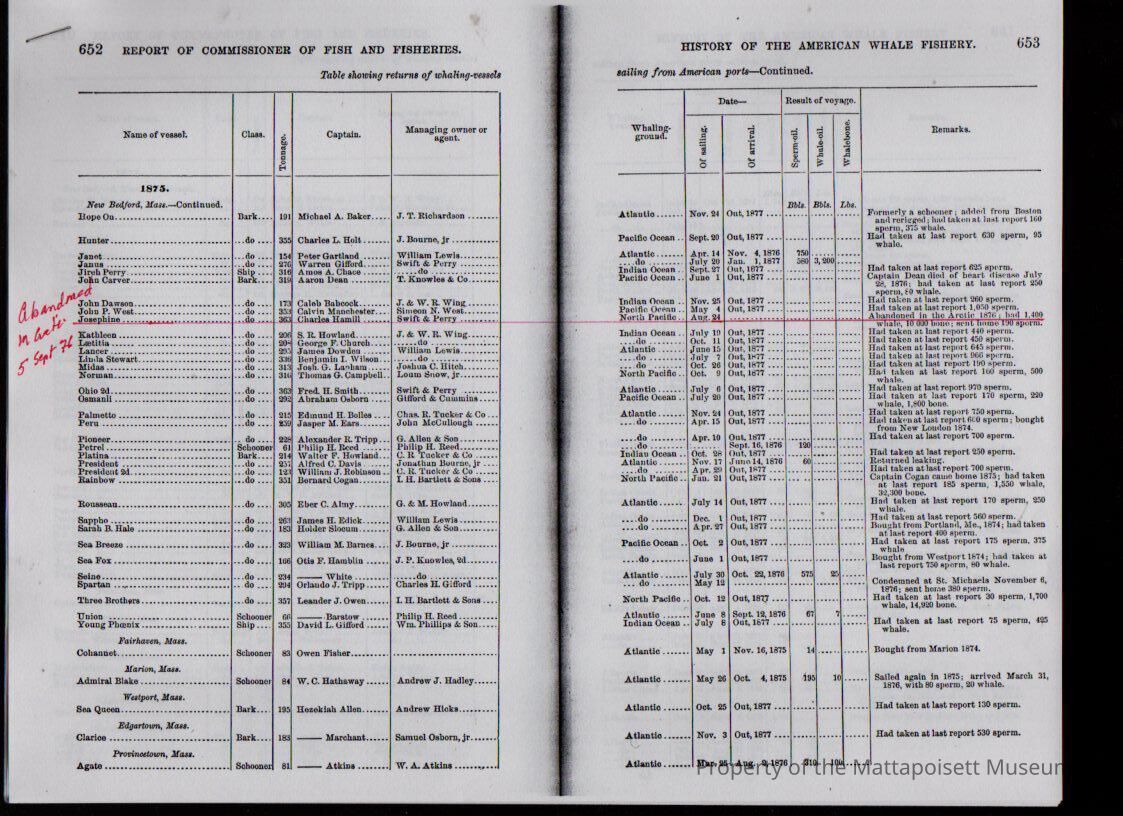 Tables showing returns of whaling-vessels sailing from American ports, photocopied, from Starbuck.Collection