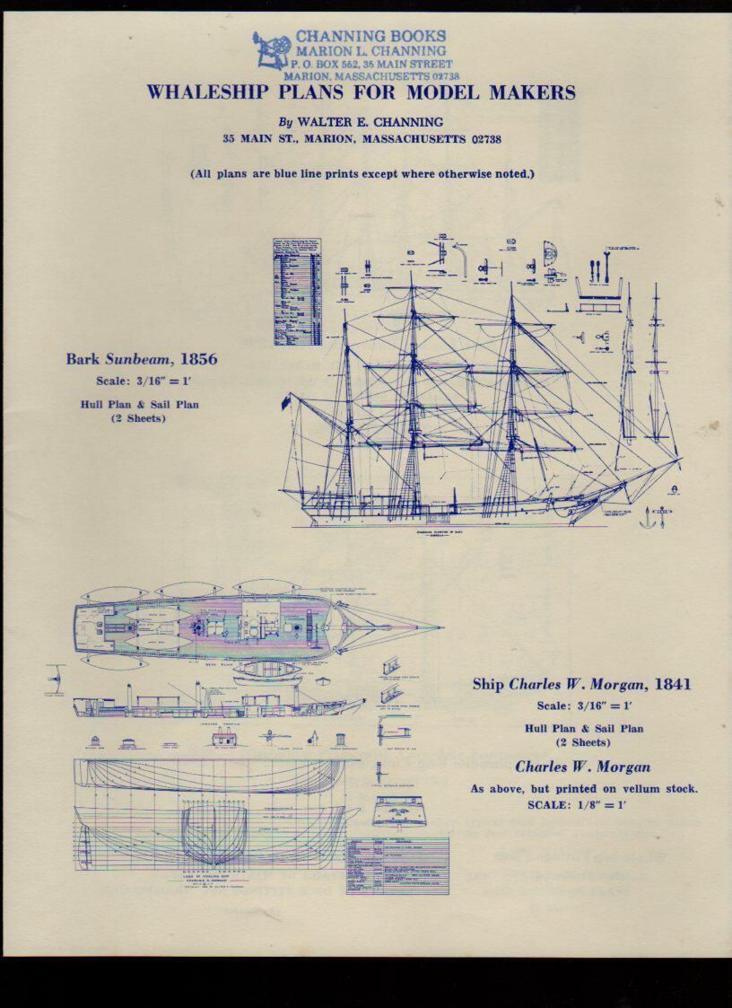 Whaleship plans for Model Makers, by Walter E. Channing. Bark Sunbeam, Ship Charles W. Morgan, Bark Josephine, Bark Wanderer.Collection