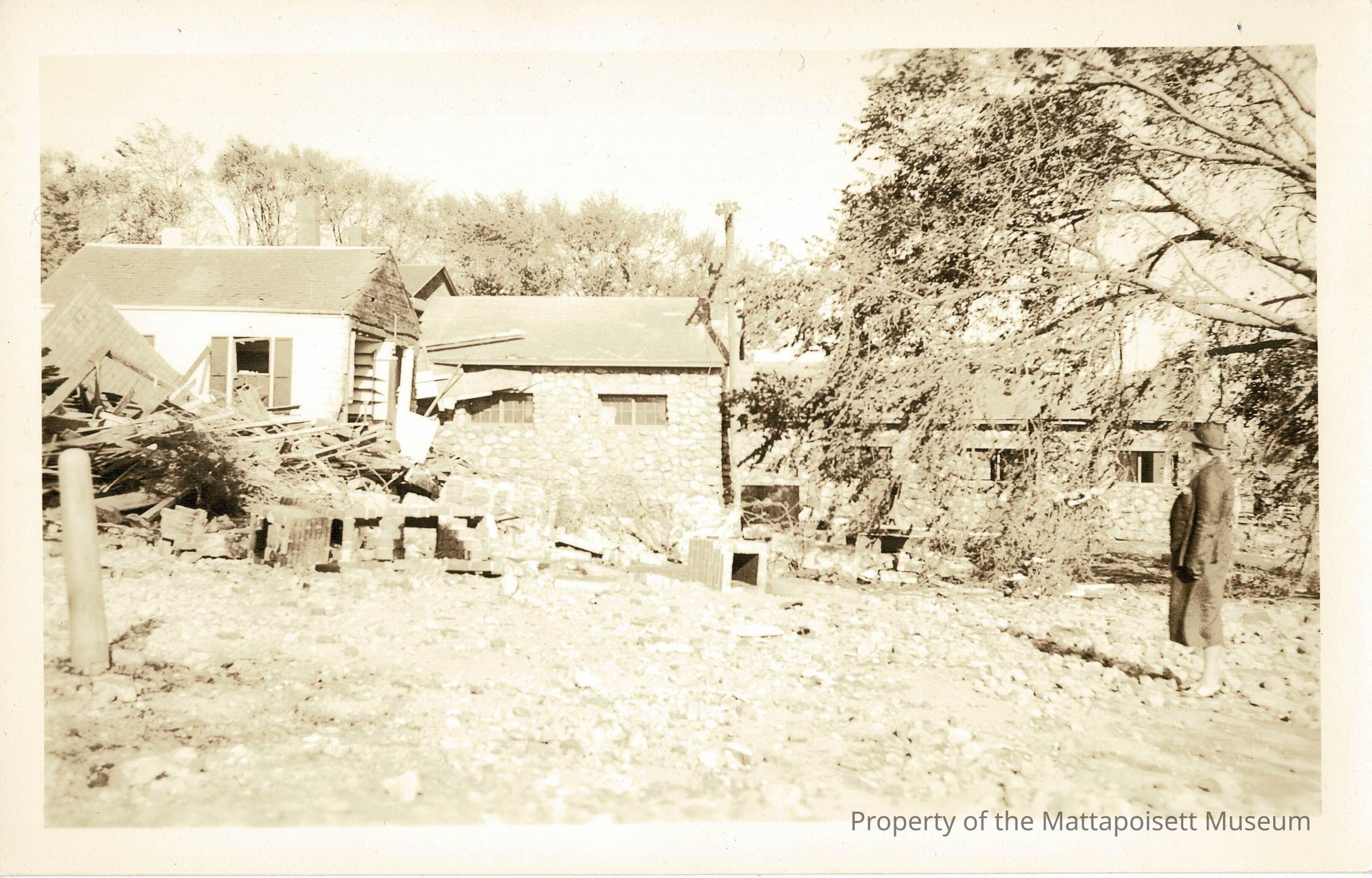 A postcard showing the damage caused in Mattapoisett by the 1938 hurricane.Collection