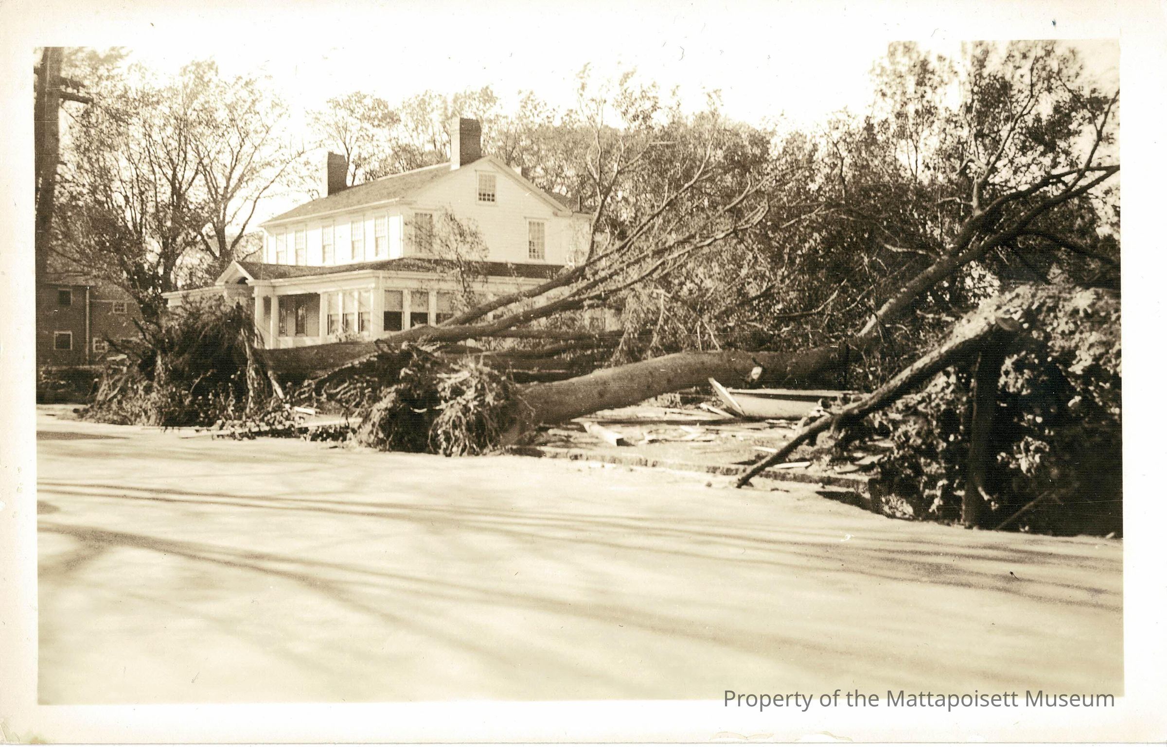 A postcard showing the damage caused in Mattapoisett by the 1938 hurricane.Collection