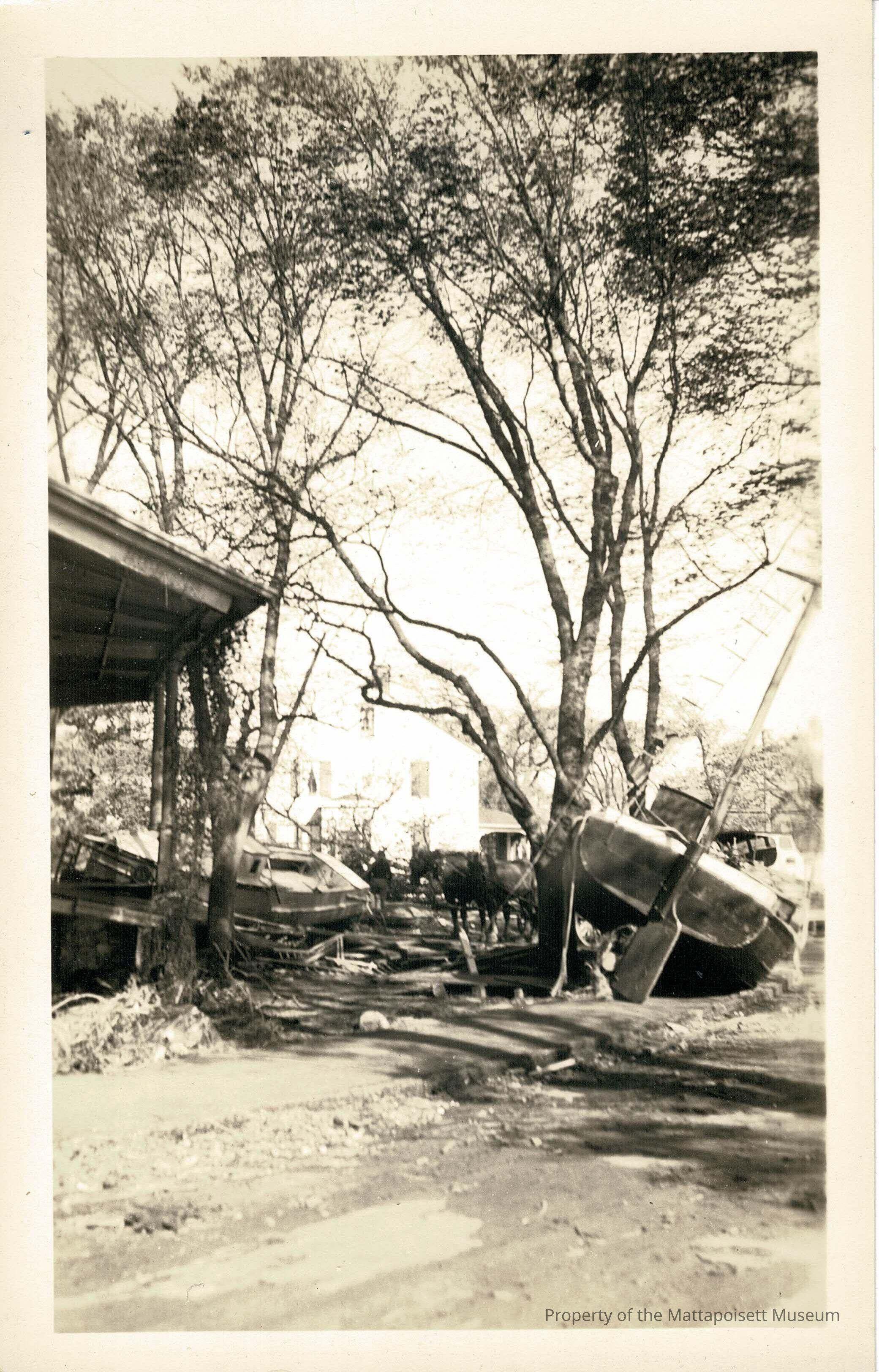 A postcard showing the damage caused in Mattapoisett by the 1938 hurricane.Collection