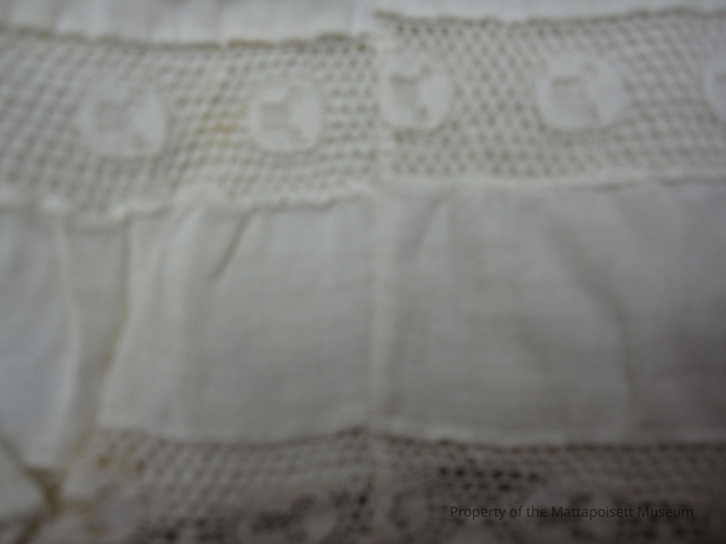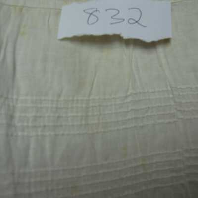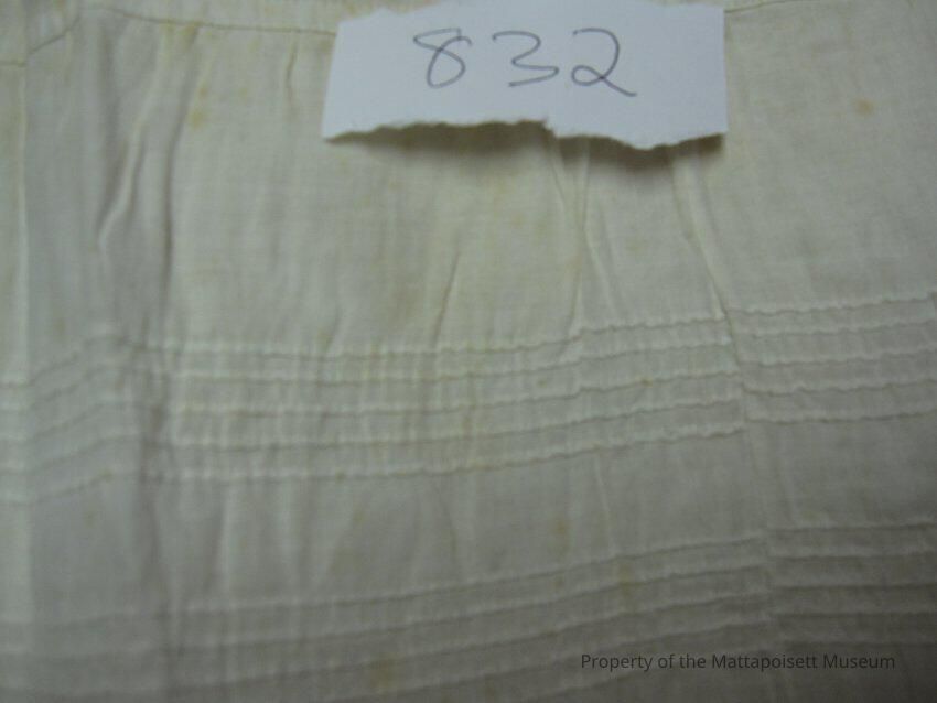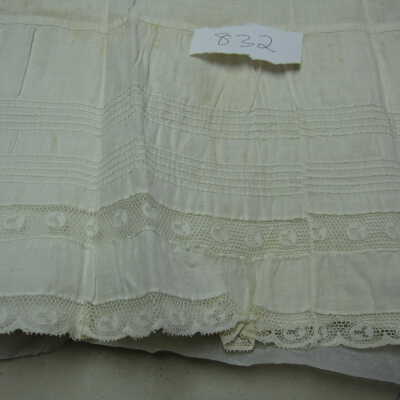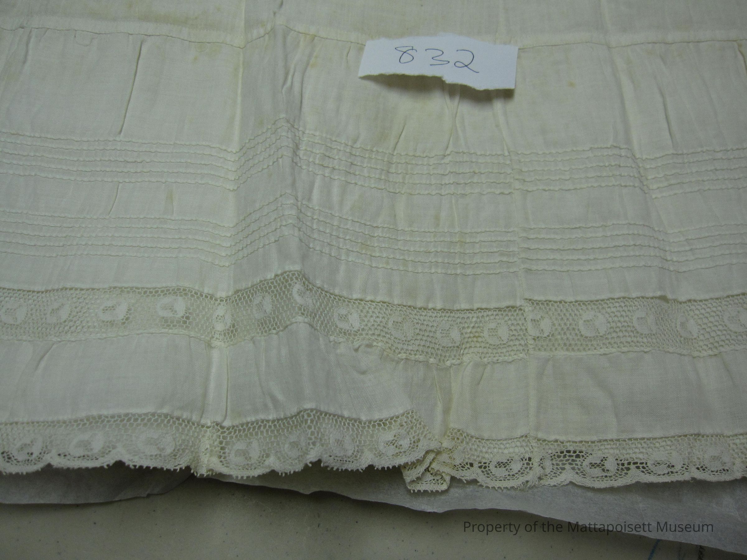 Long white cotton petticoat. Lace trim and pleats at hem. Drawstring.Collection