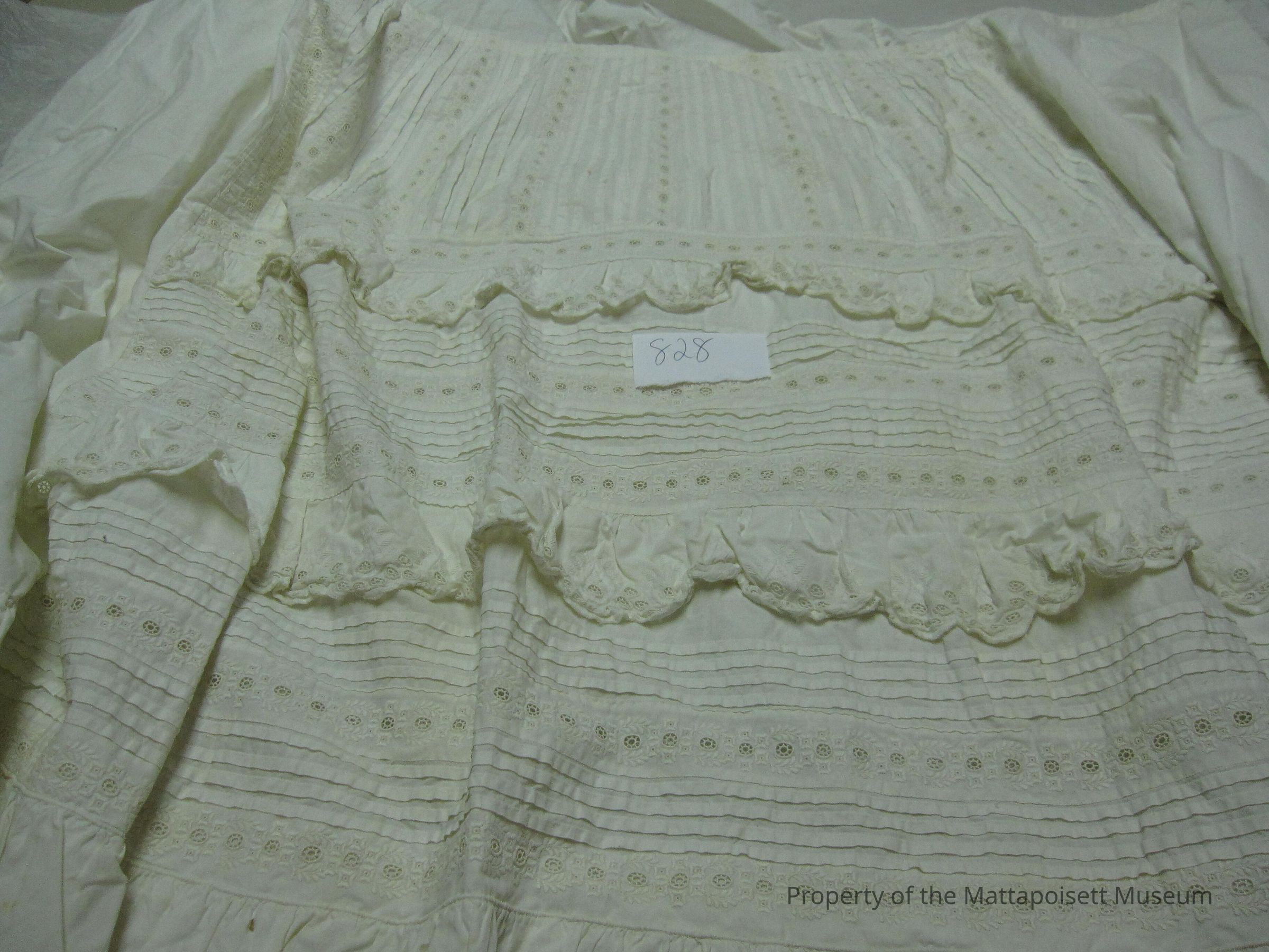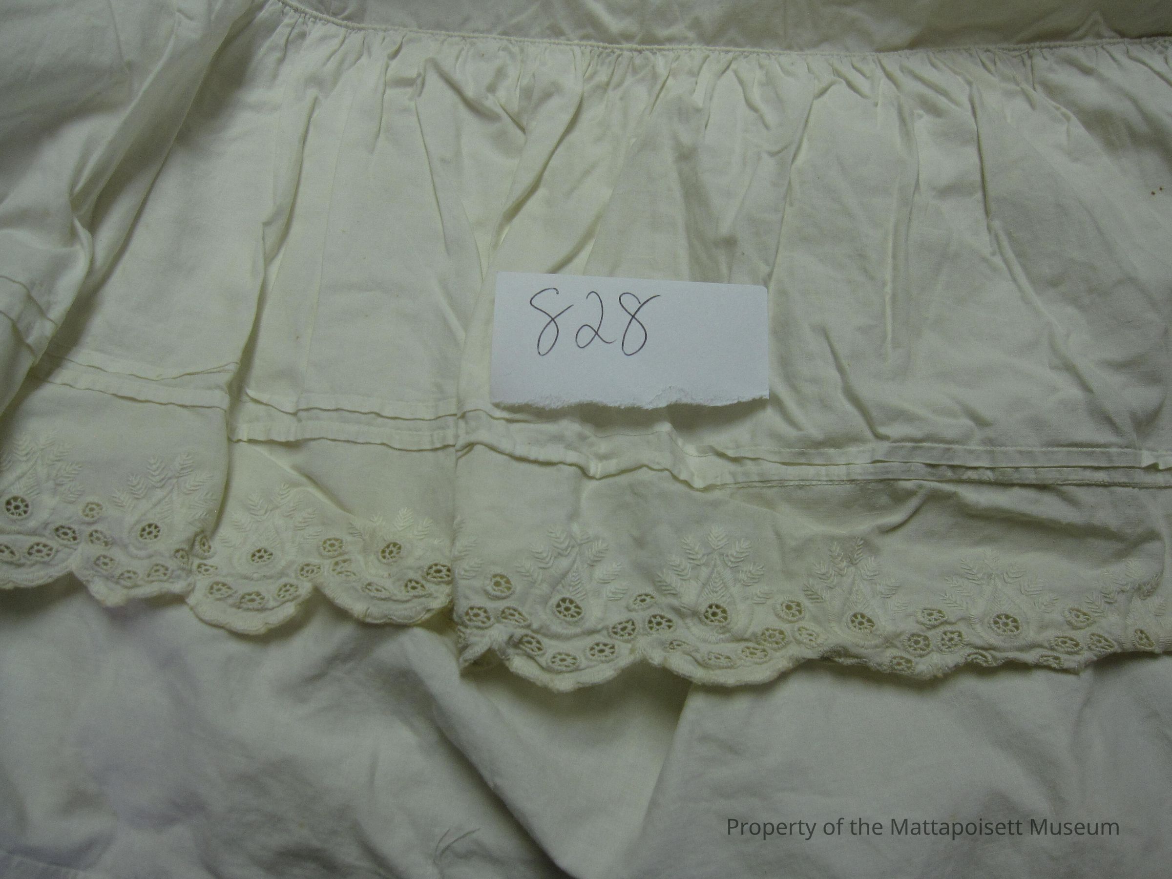 Petticoat. Cotton. Front embroidered, pleats. Ruffles waist to hem.Collection