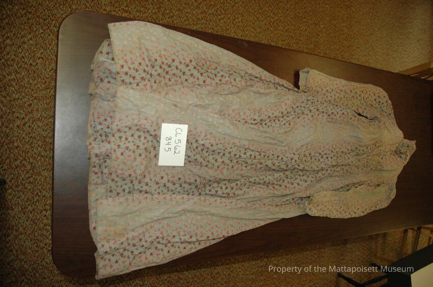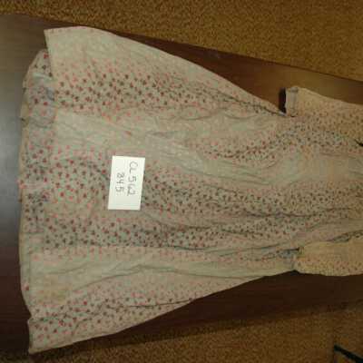 Long gray dress or dressing gown with red floral design. Front opening. Calamanco lining in top.Collection