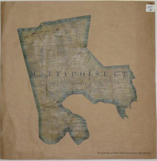 1857 cut out map of Mattapoisett. The back reads: Mattapoisett, Mass. From map of Plymouth County by Henry F. Walling. Supt. of the state map.Collection