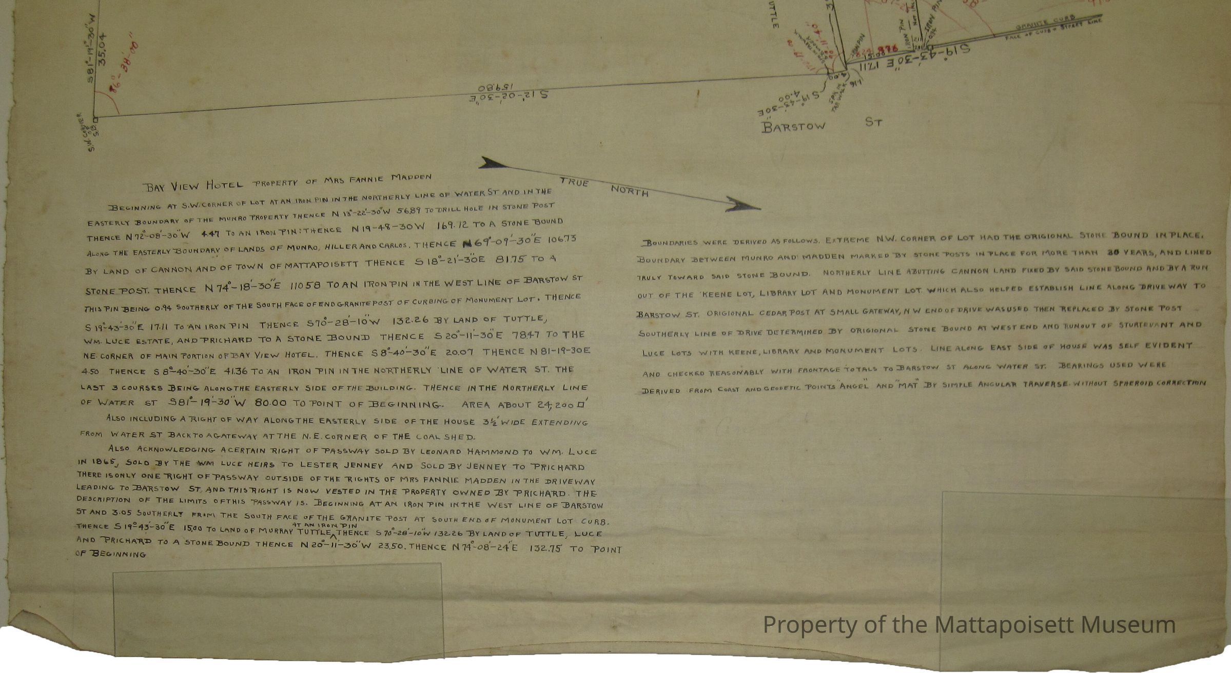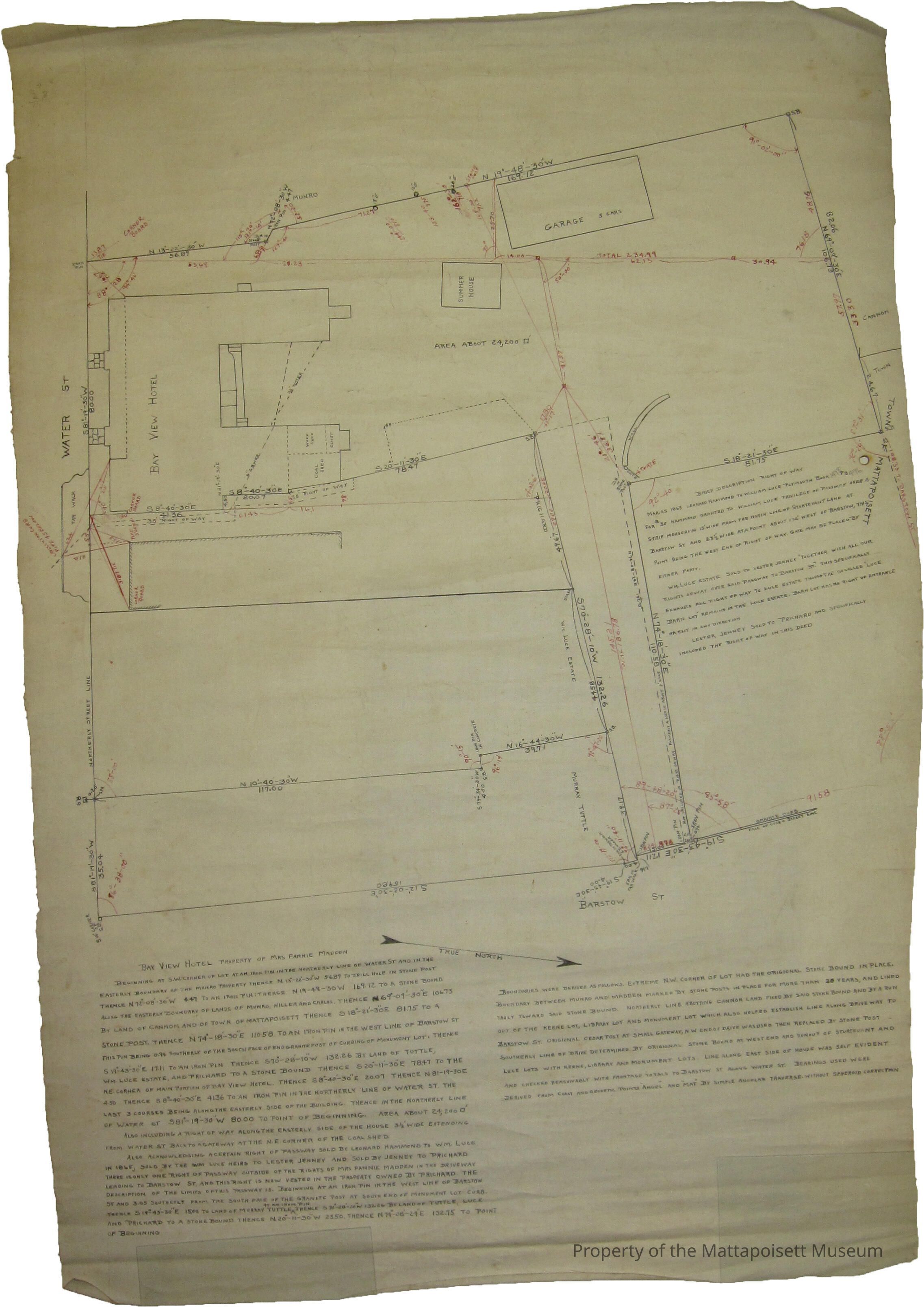Bay View Hotel property of Mrs. Fannie Madden and abutters. Barstow and Water Streets.Collection