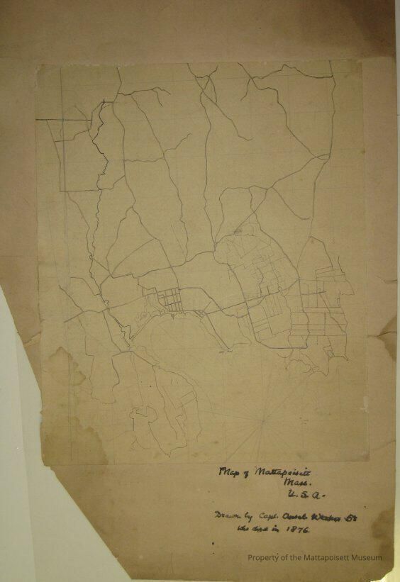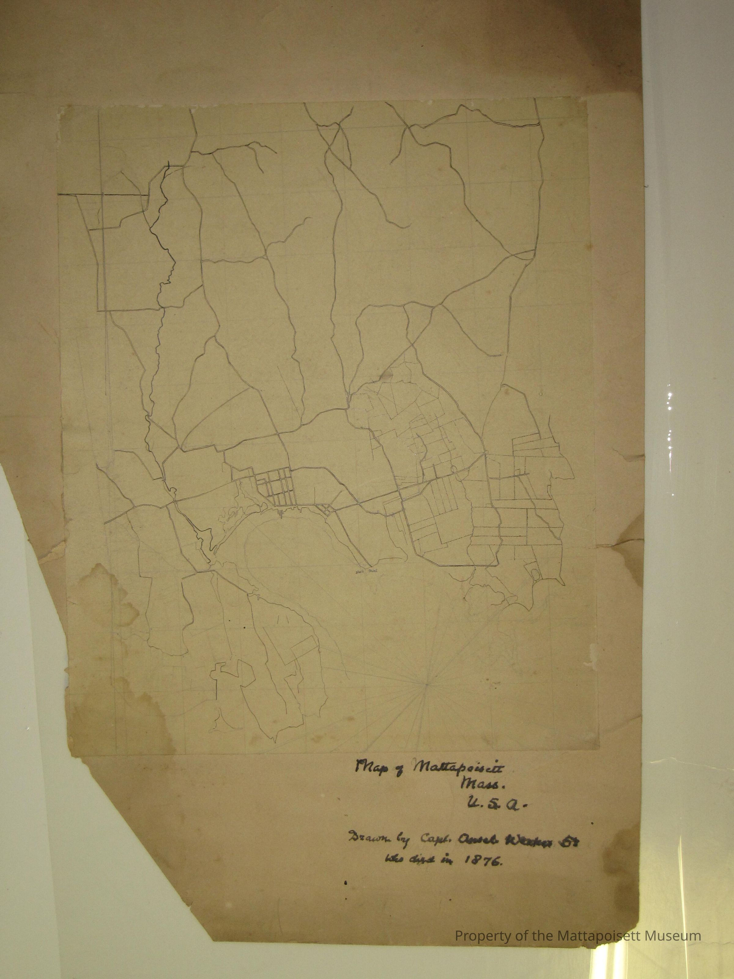 Map "blank" of Mattapoisett, Mass. Mounted on cardboard. Drawn by Capt. Ansel Weeks Sr. Who died in 1876.Collection