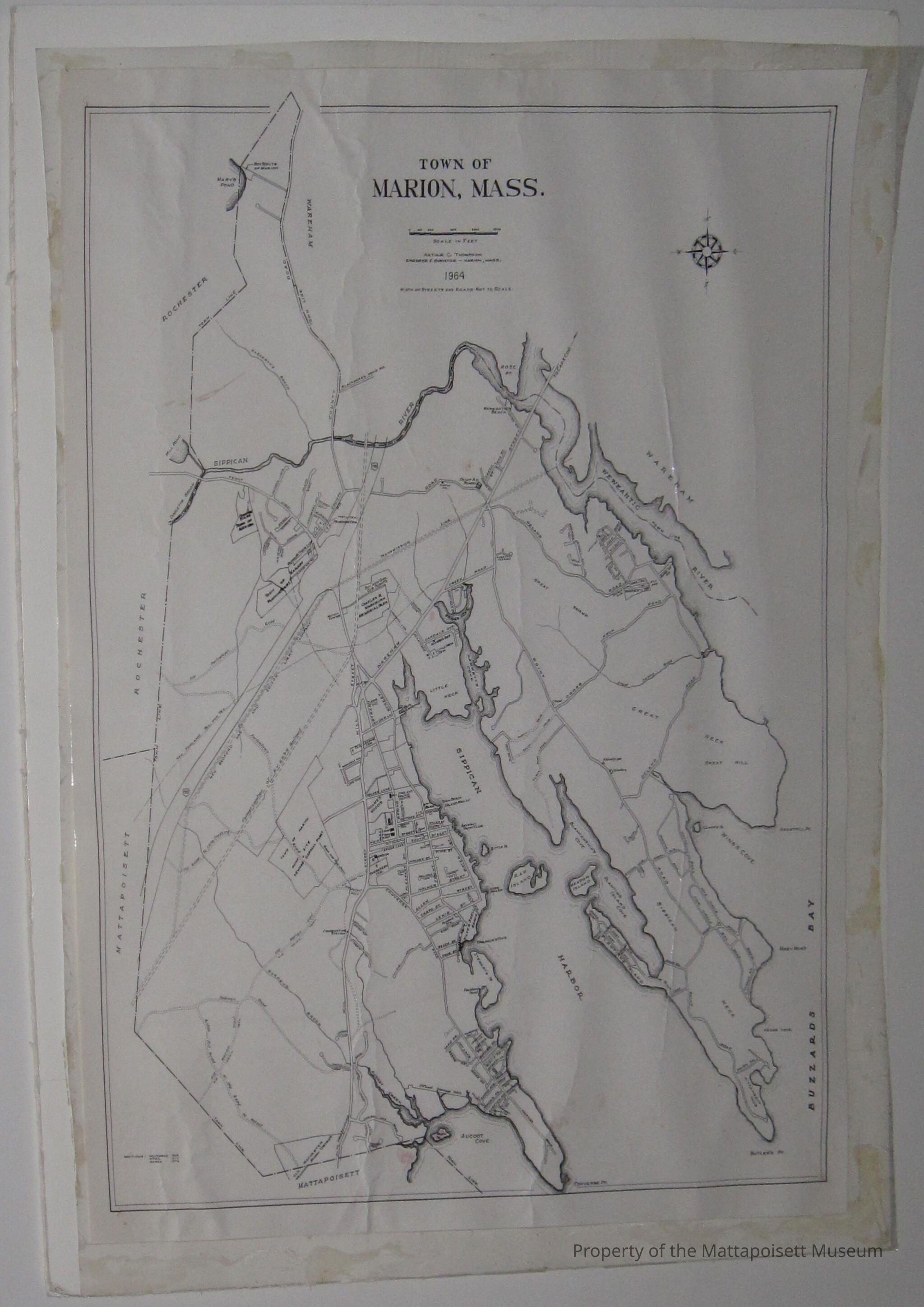 Town of Marion, Mass. 1964. Sippican Harbor, Buzzard’s Bay included. Mounted on foam board, laminated.Collection