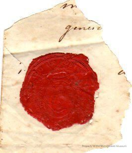 Wax stamp. Difficult to read. Ripped from original sheet of paperCollection