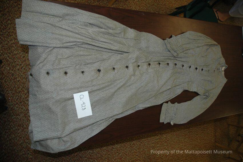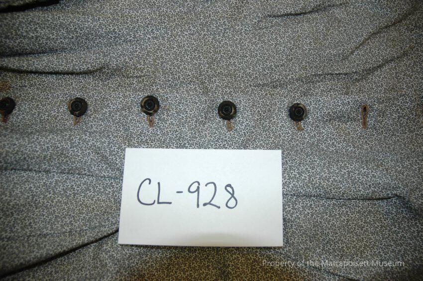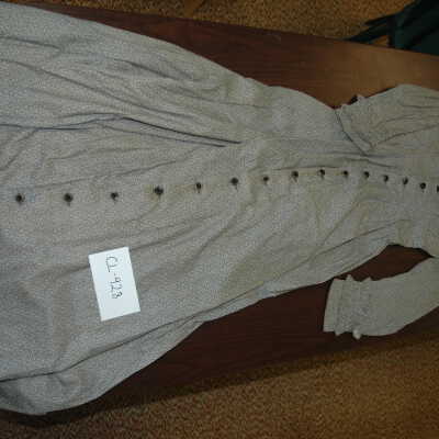 Long-sleeve, button down dress. Black on white floral print, ruffled cuffs.Collection