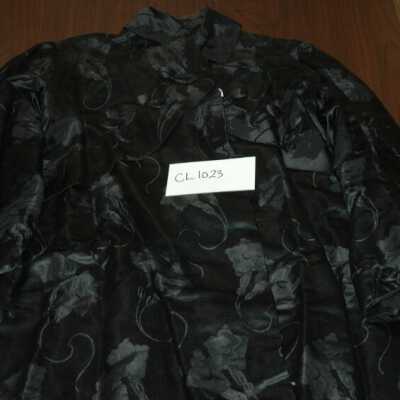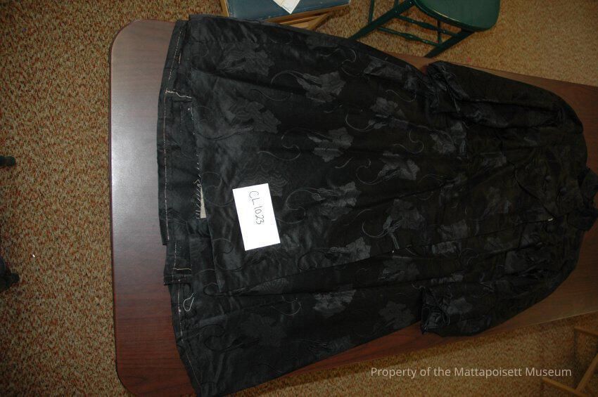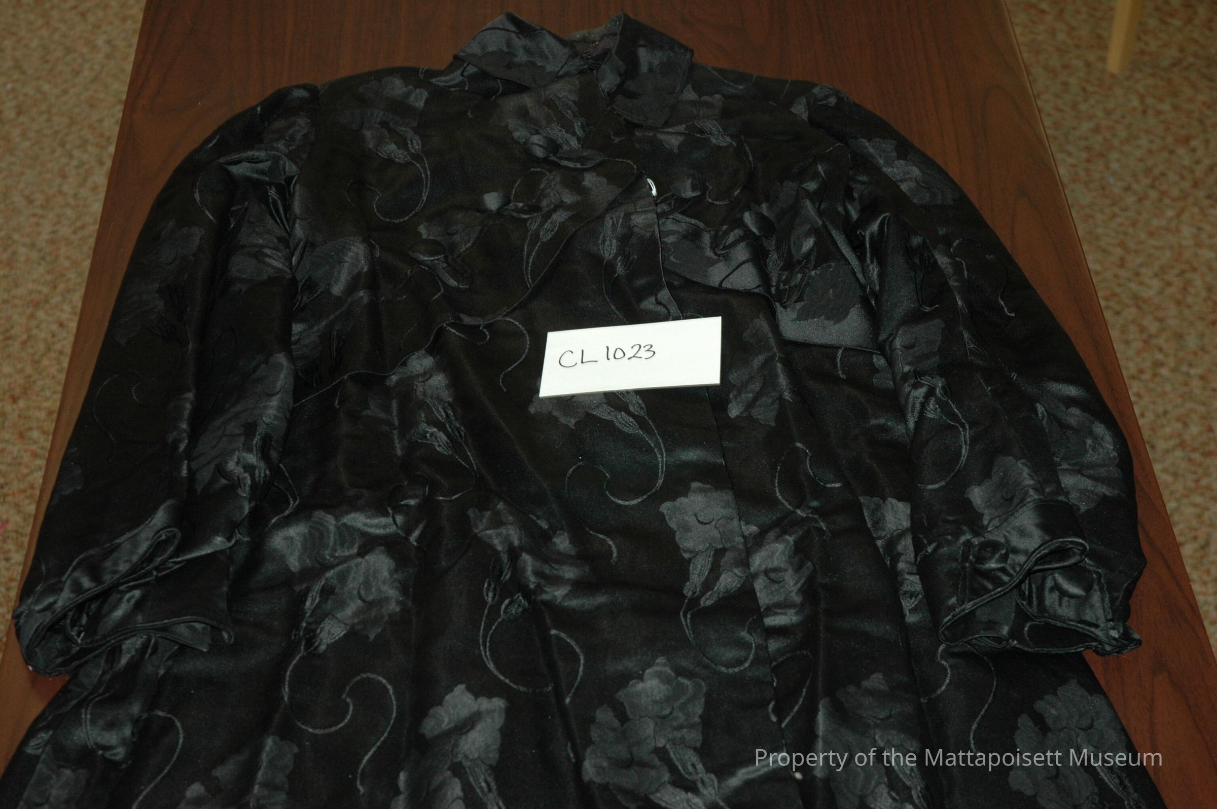 Long silk mourning coat. Silk-covered buttons, and floral pattern.Collection