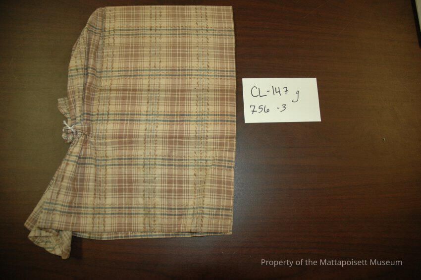 Plaid, light brown, cotton bonnet. Reinforced with stiffener.Collection