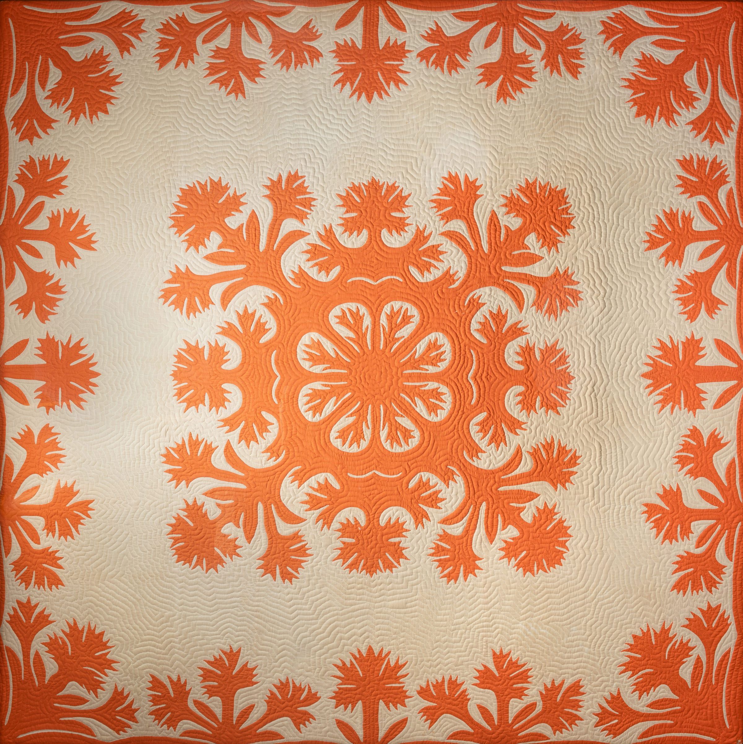 Hawaiian Quilt - Untitled (with orange floral design)Entry/Object ID