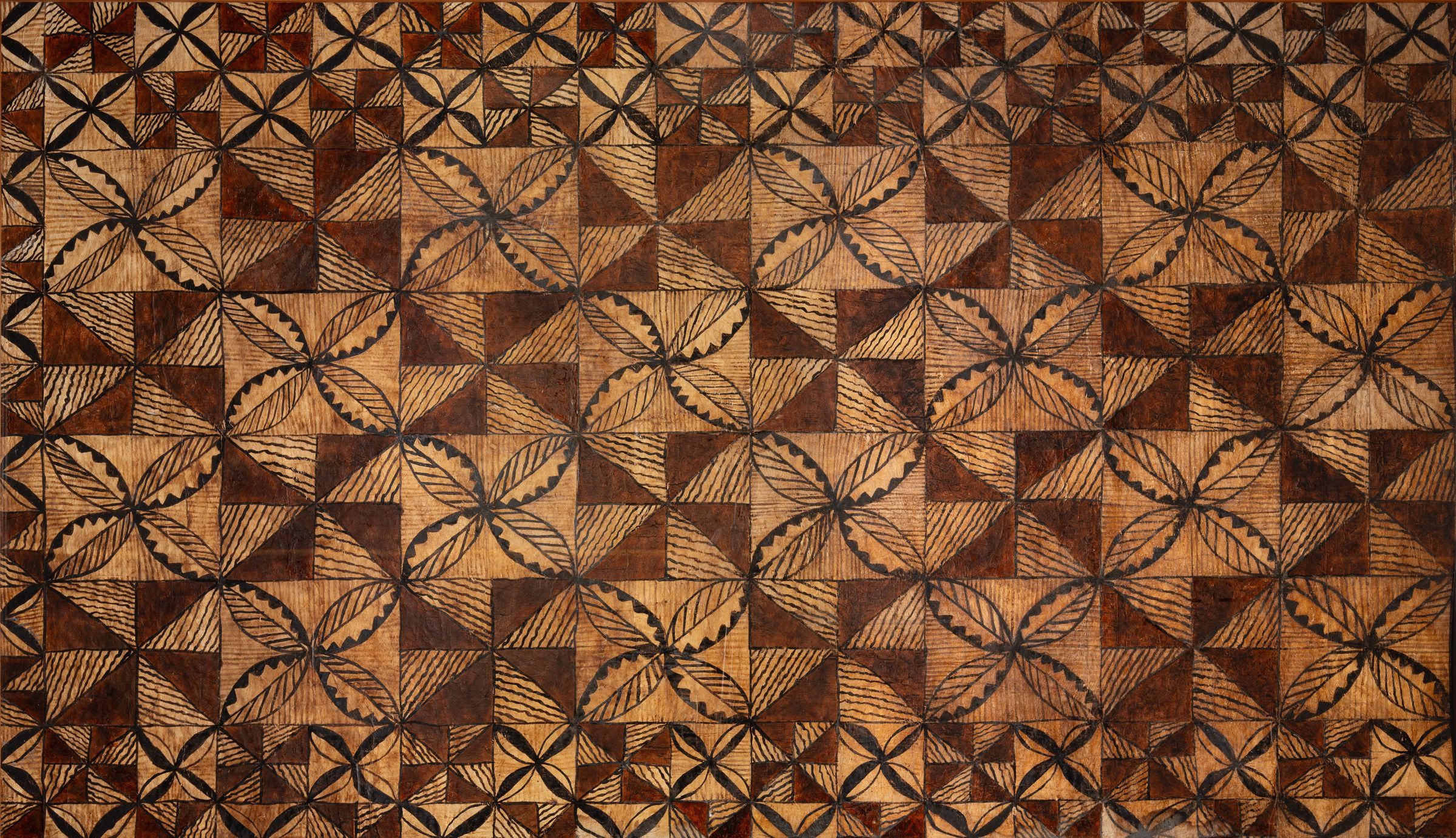 Tongan ngatu is prepared through a special process of soaking and pounding the bark, before being decoratively painted with vegetable dyes and oils, this cloth was originally used to make common items like clothes and floormats, alongside being used for ceremonial purposes.