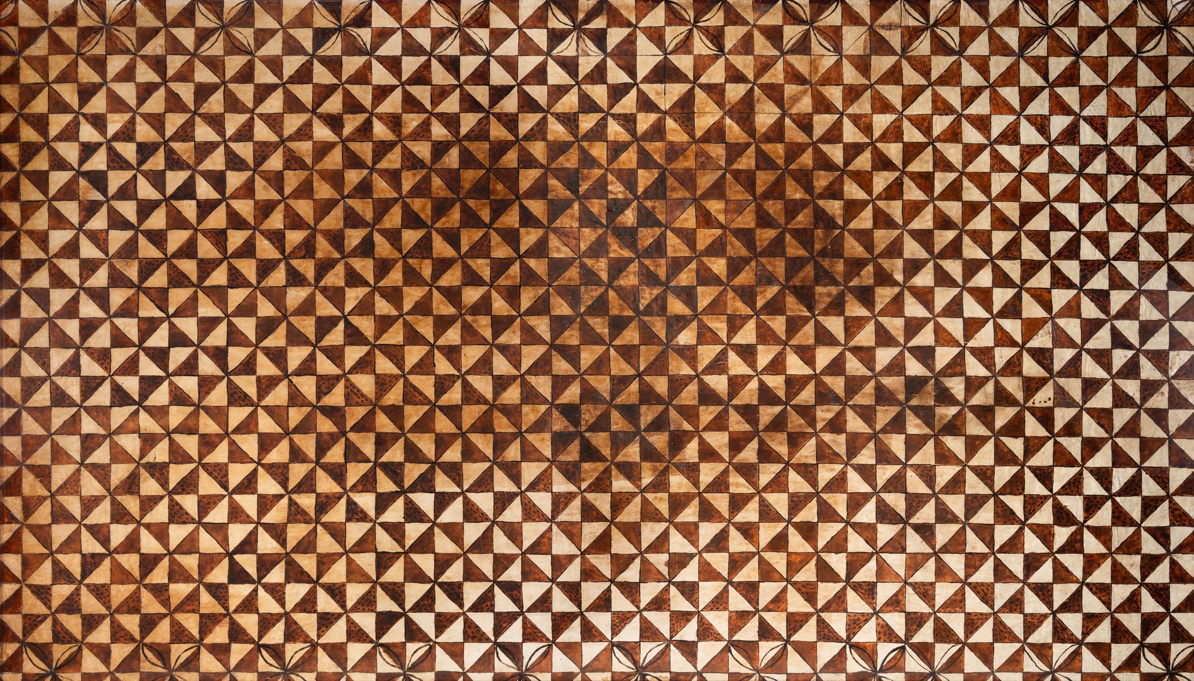 This Tongan ngatu, painted in red and black pigments with an overall floral and triangular motif, is part of the Hotel’s distinct collection of diverse and stunning bark cloth from across the Pacific.