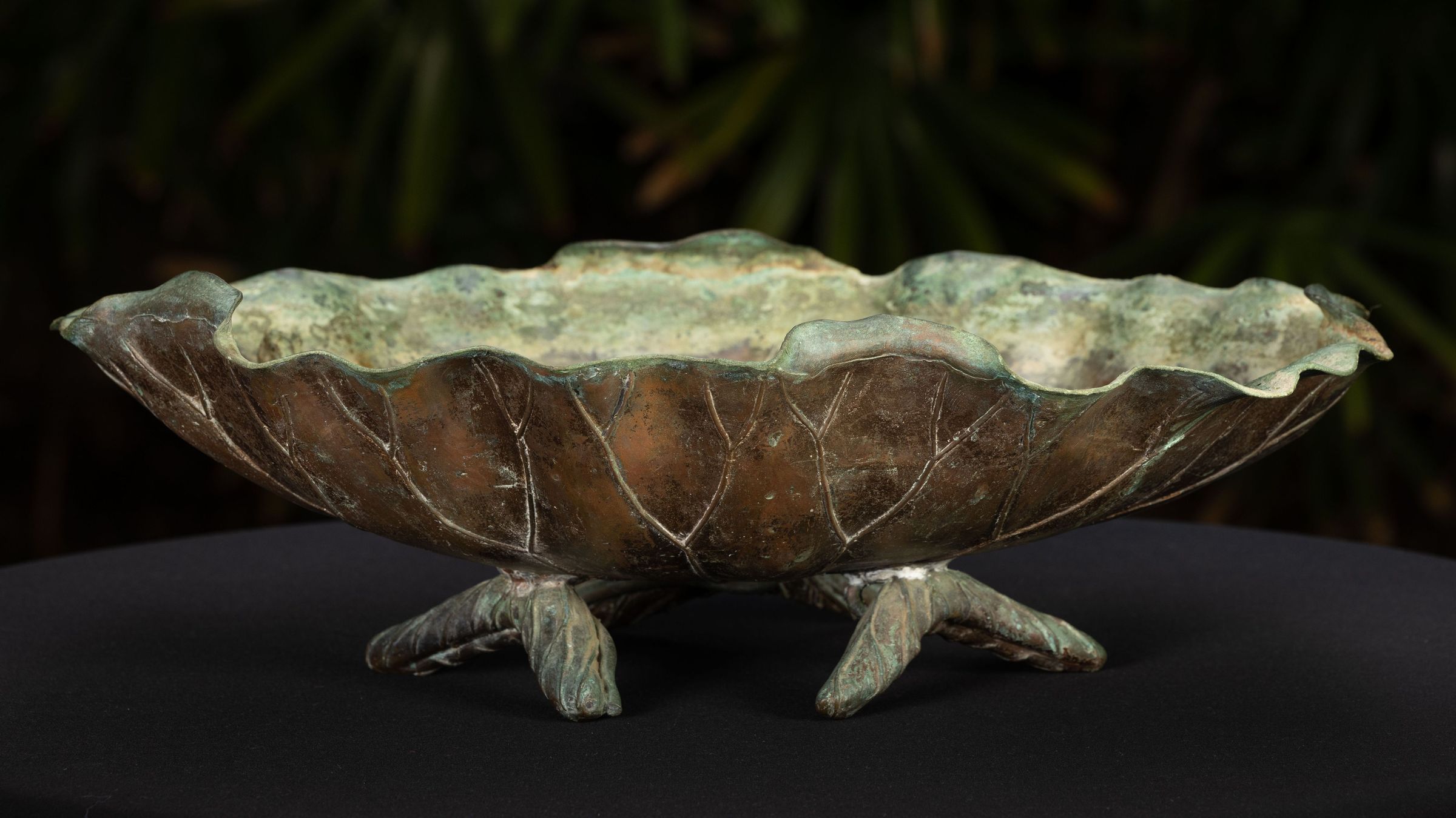 This captivating pair of Japanese bronze lotus leaf-shaped basins from the 19th-20th century are more than mere artifacts; they embody a transformative era in Japanese history, born from the radical shifts and reforms of the Meiji period.