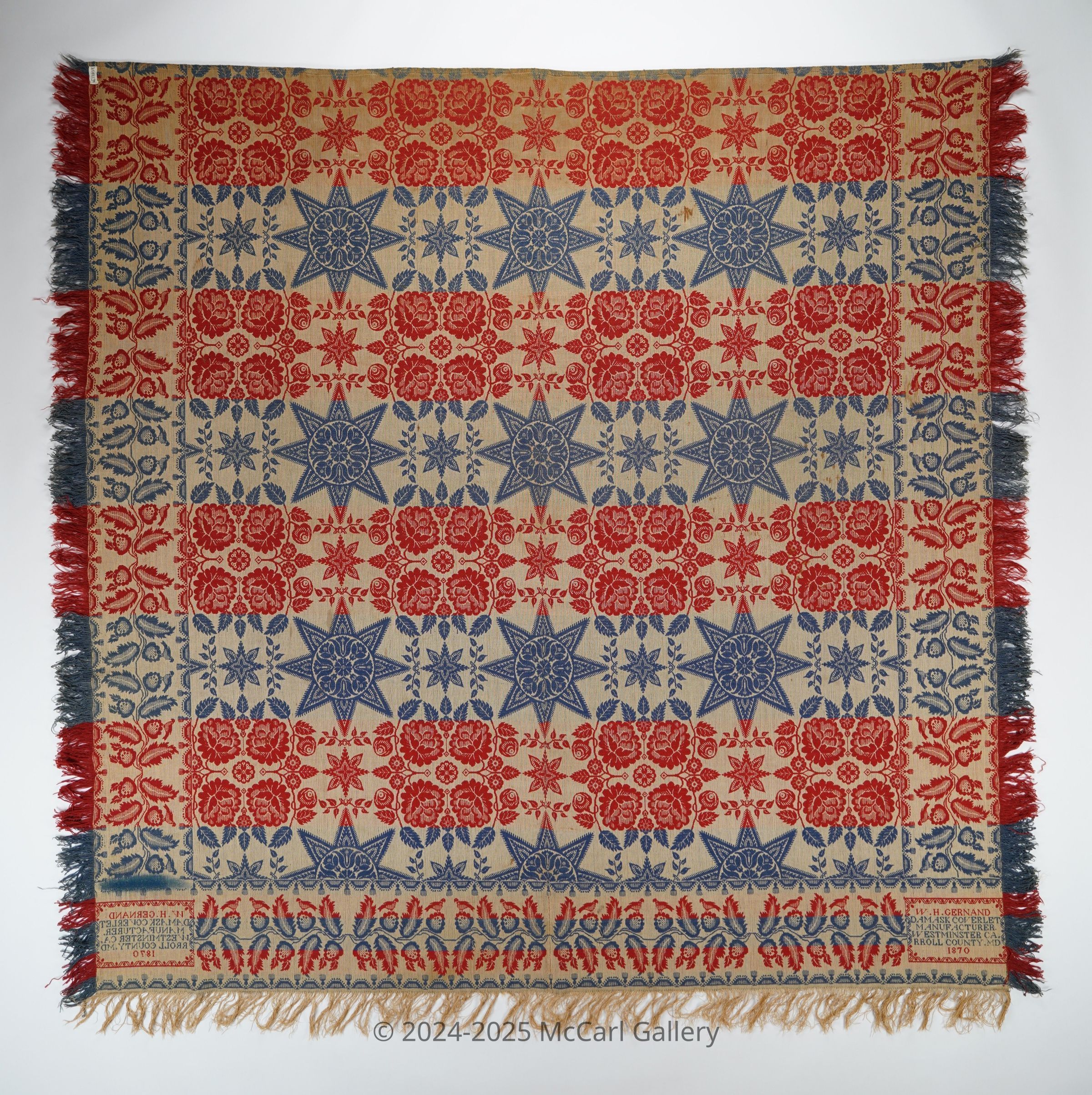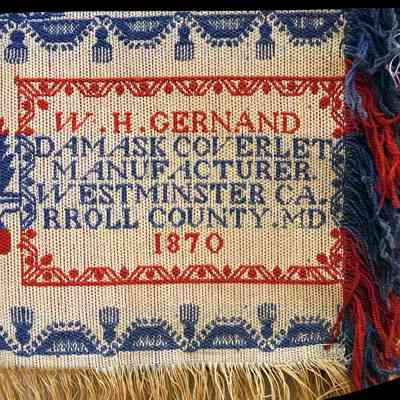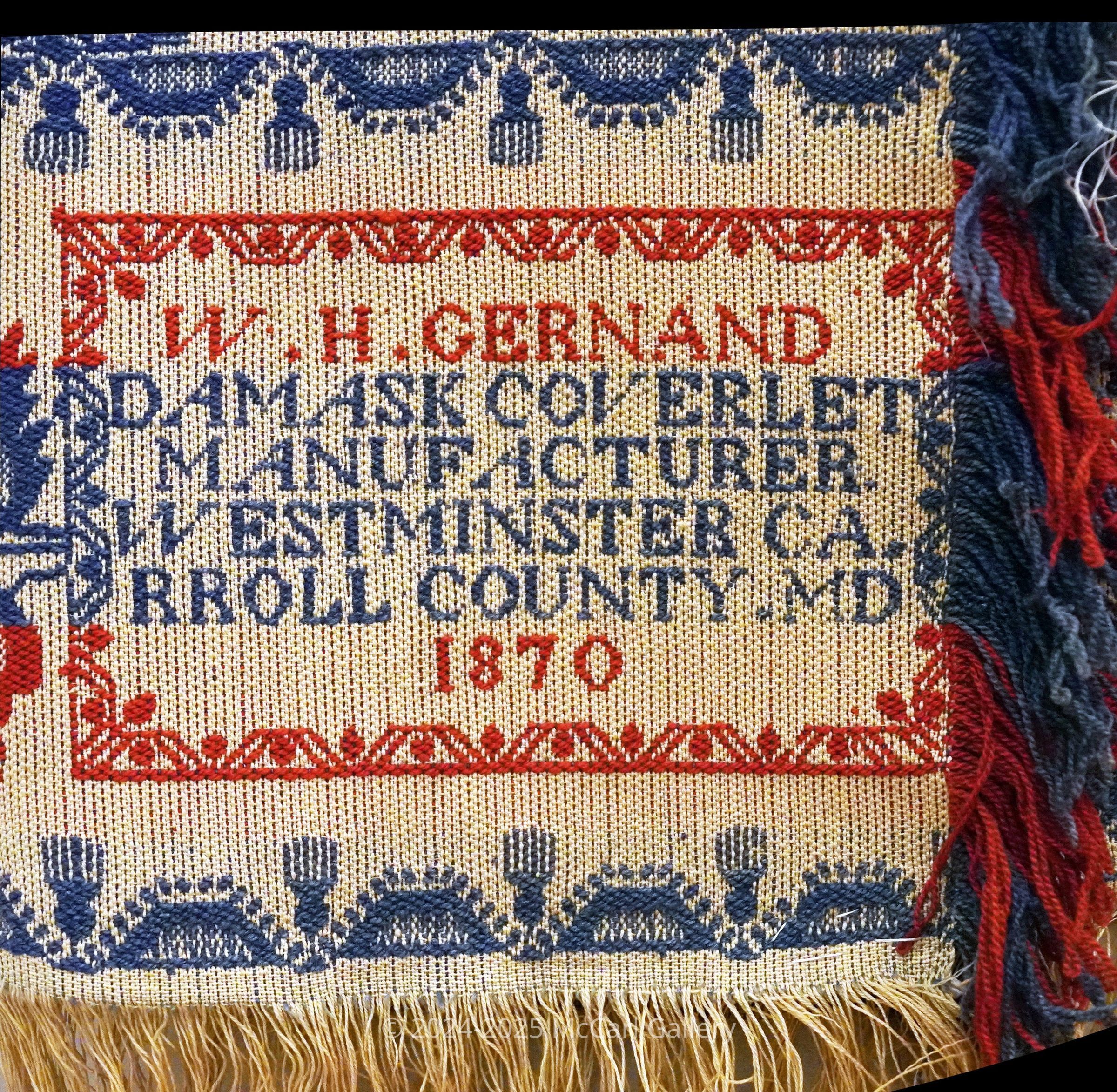 W.H.GERNAND/DAMASK COVERLET/MANUFACTURER./WESTMINSTER CA./RROLL COUNTY.MD/1870
