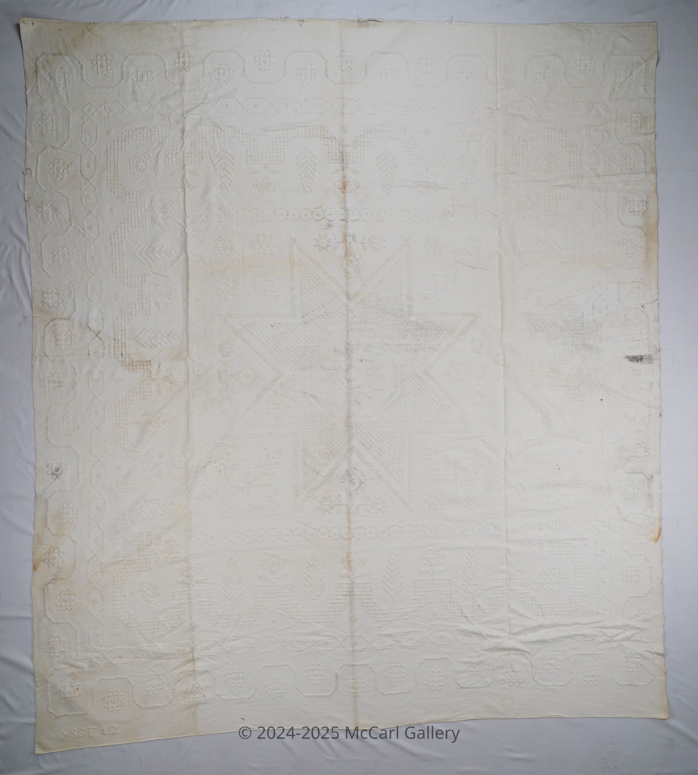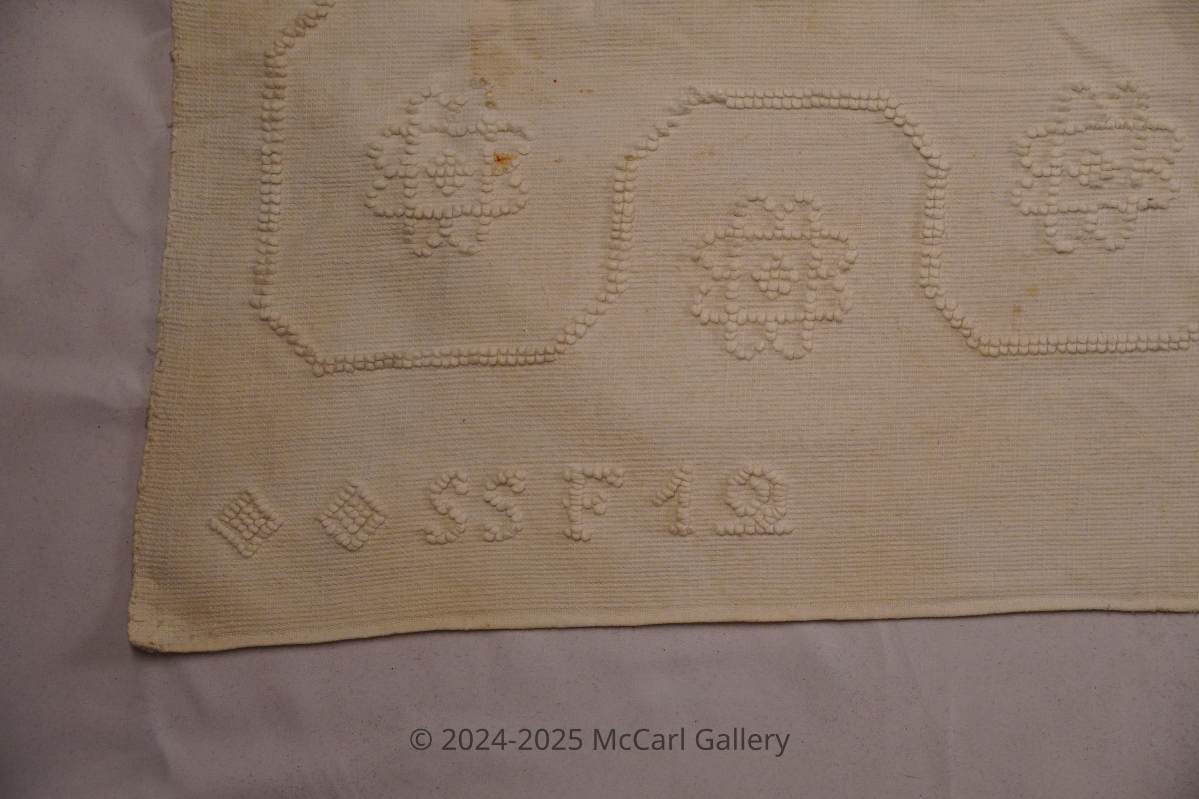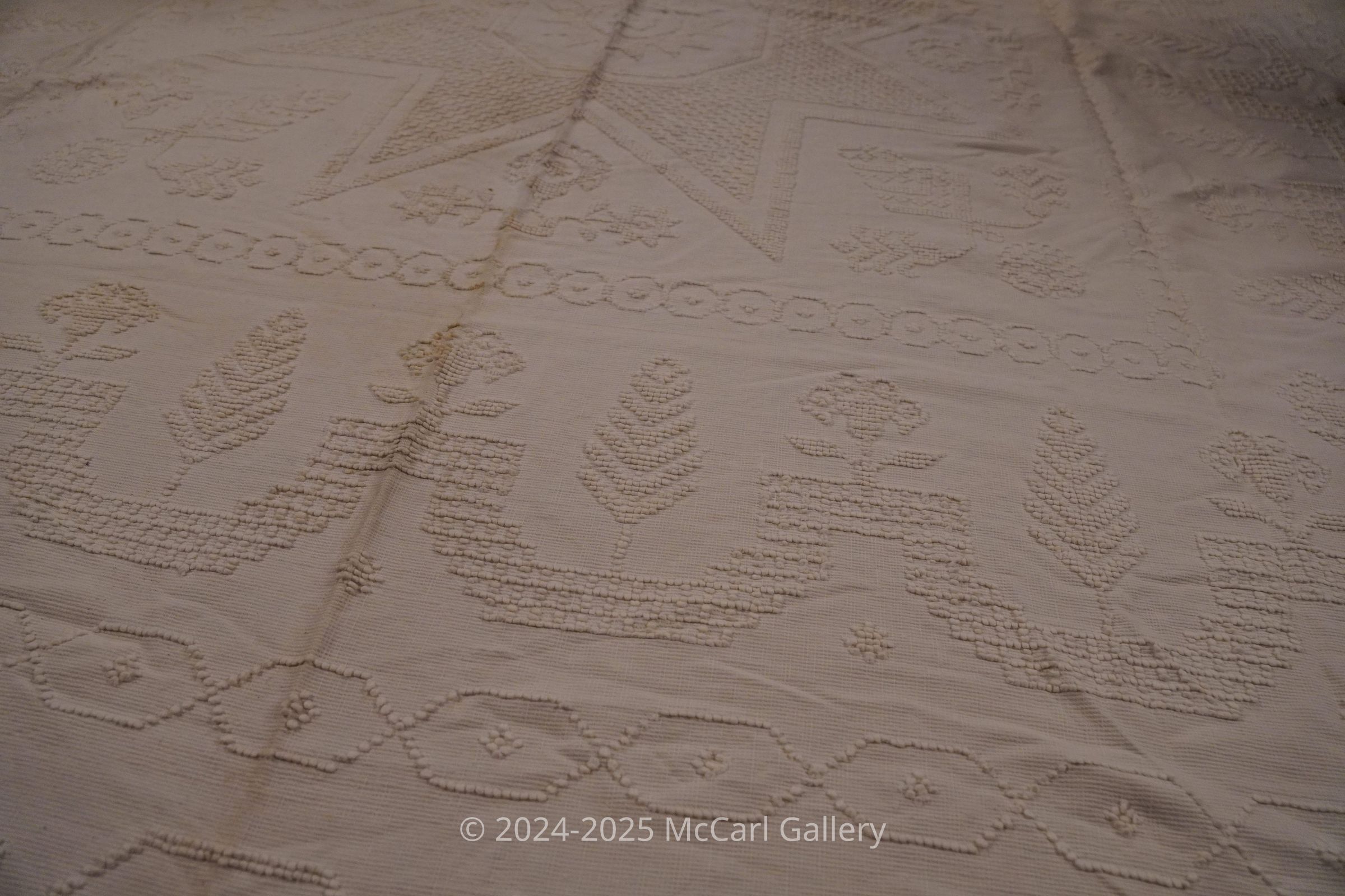 Natural figured weft loop coverlet; seamless. Border on four sides; no fringeCollection