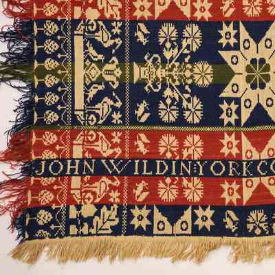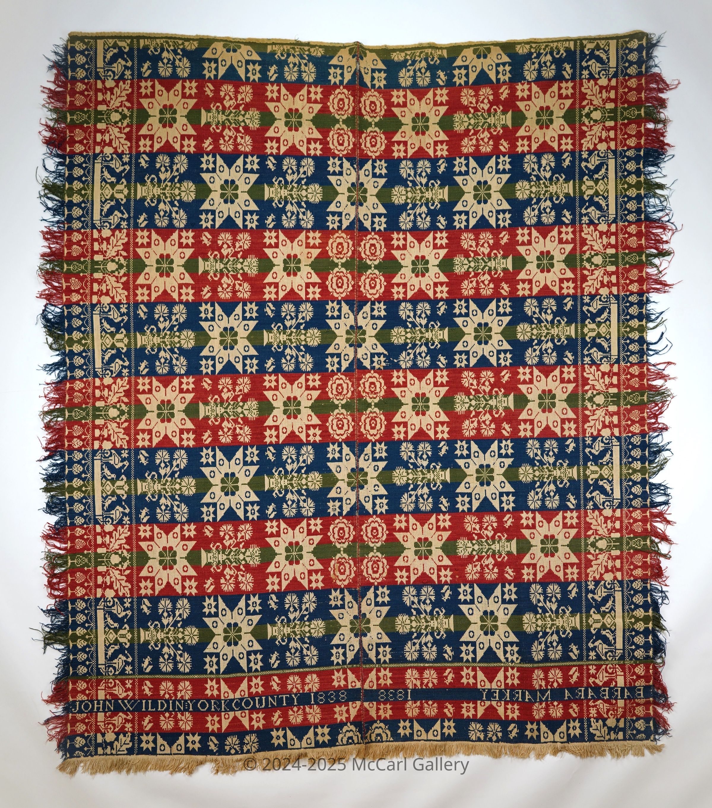 Pennsylvania coverlet by John Wildin for Barbara Markey, 1838, tied beiderwandDescription