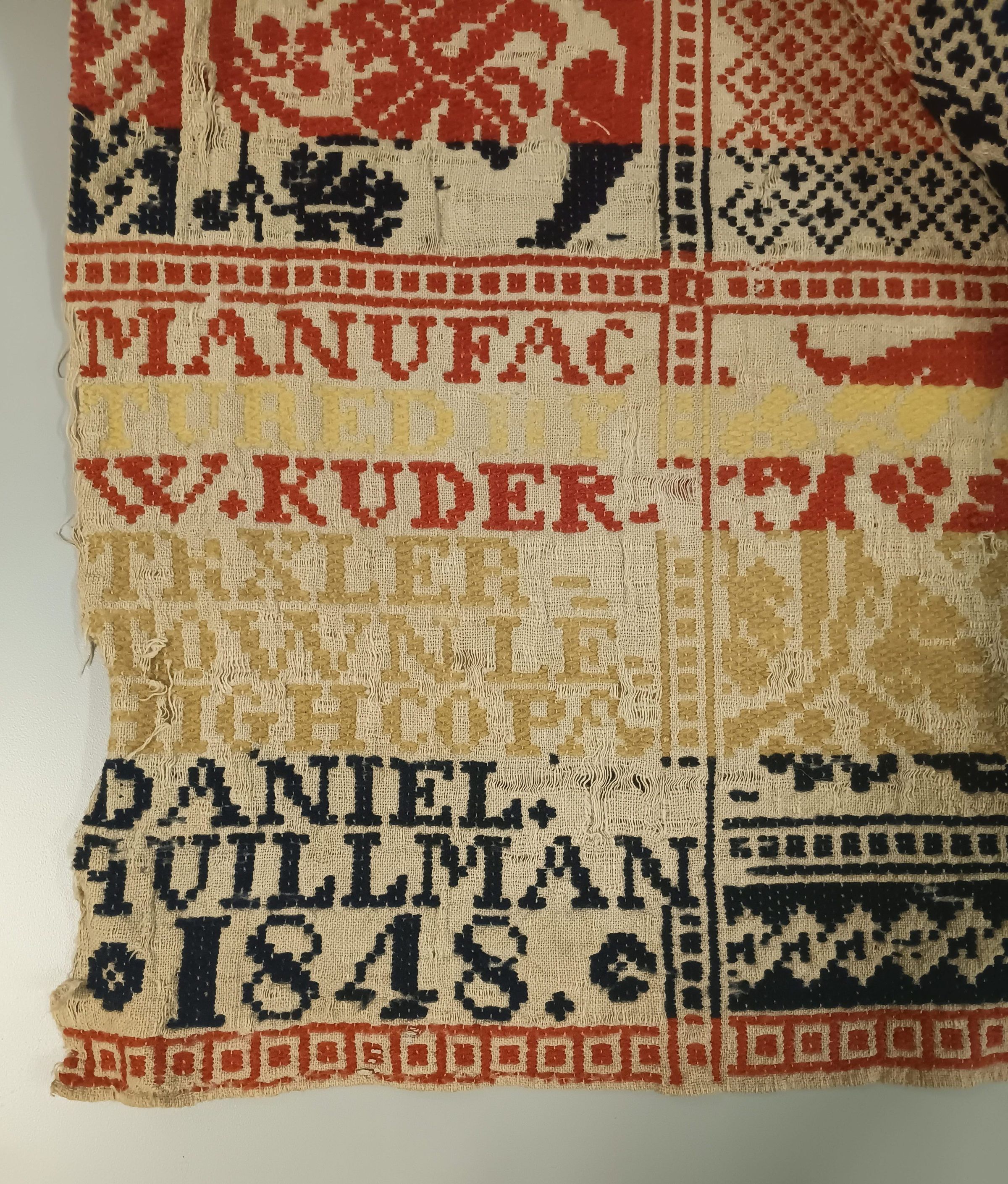 MANUFAC/TURED BY/W.KUDER./TRXLER-/TOWN LE-/HIGH.CO PA/DANIEL./qUILLMAN/1848.Material/Technique