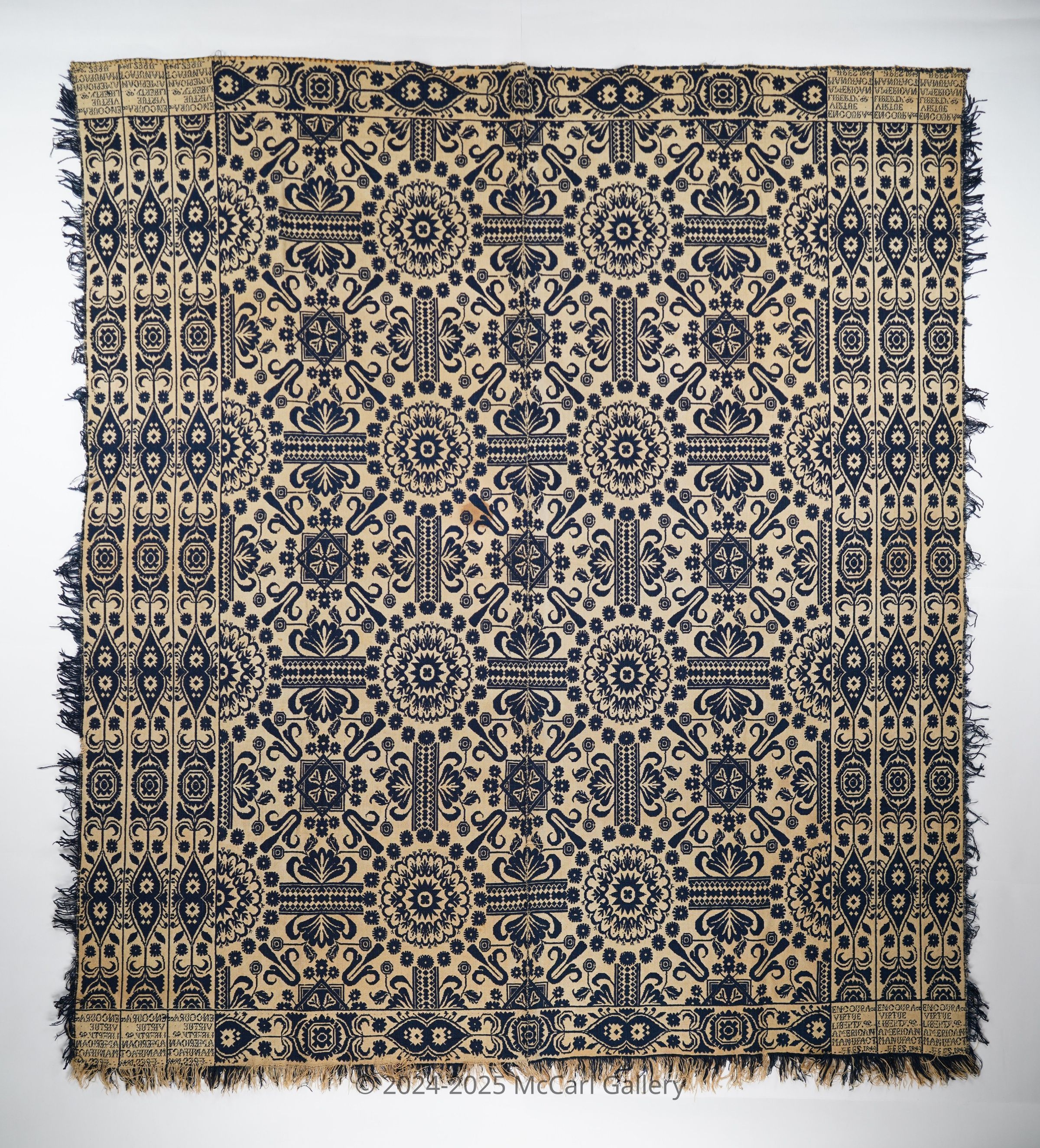 New York coverlet (attr.), doubleweave; "Encourage Virtue"Entry/Object ID