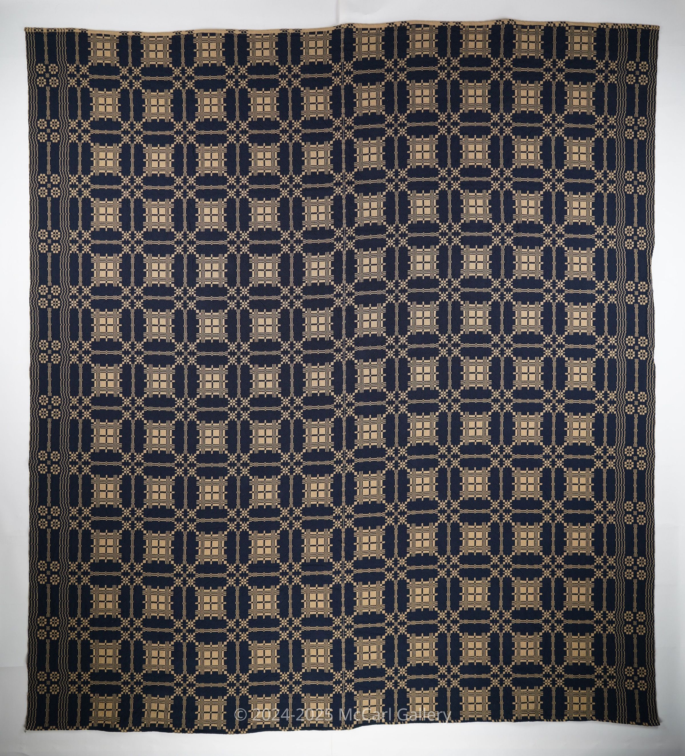 Navy and natural geometric doubleweave coverlet. Made by Heirloom Family Weavers in 2025.Collection