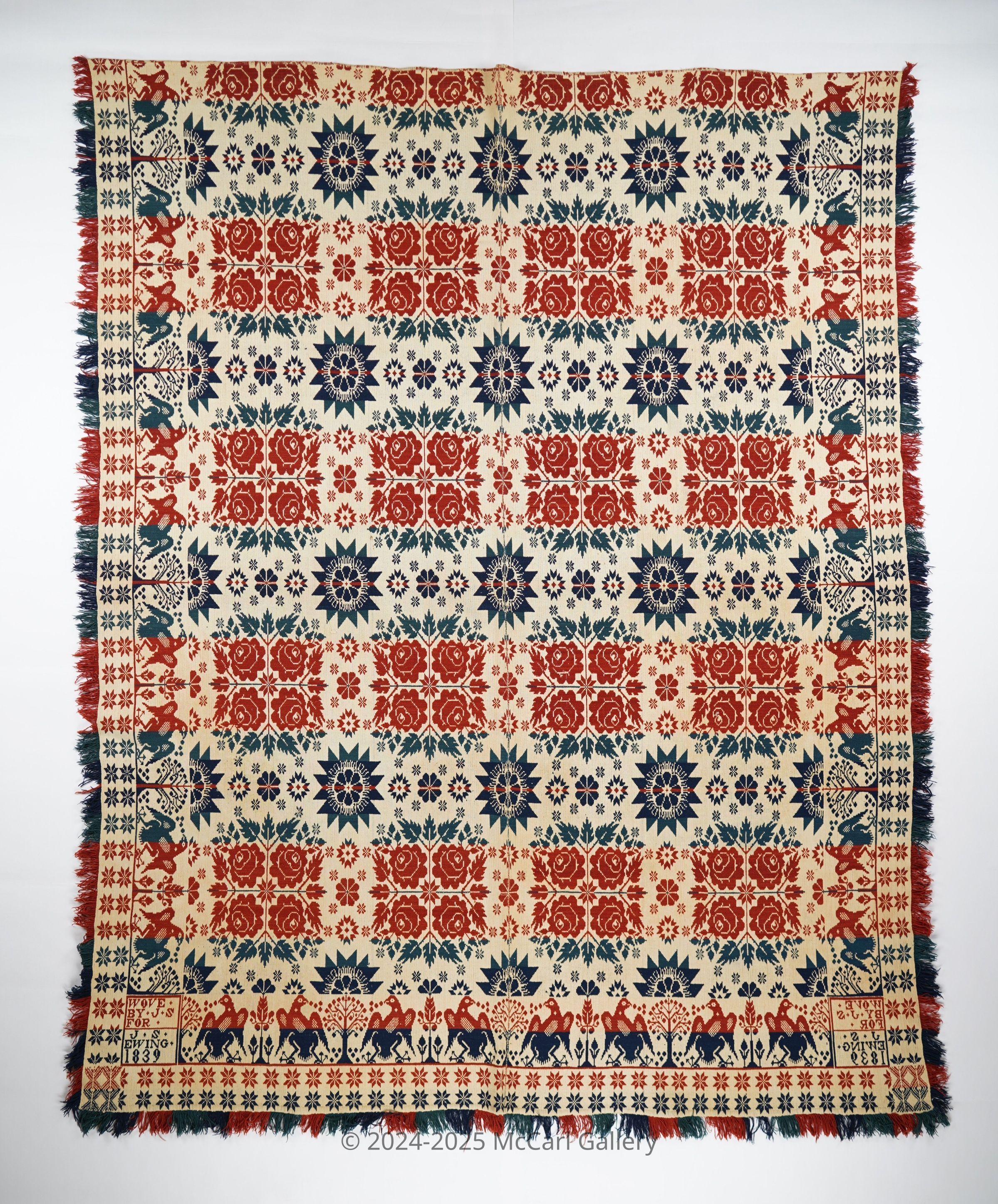 Coverlet by J. S. for J. S. Ewing, 1839, tied beiderwandEntry/Object ID