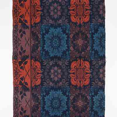 Red, navy, and light blue figured doubleweave coverlet panel attributed to Thomas Cranston of Jefferson/Switzerland County, Indiana.Made/Created
