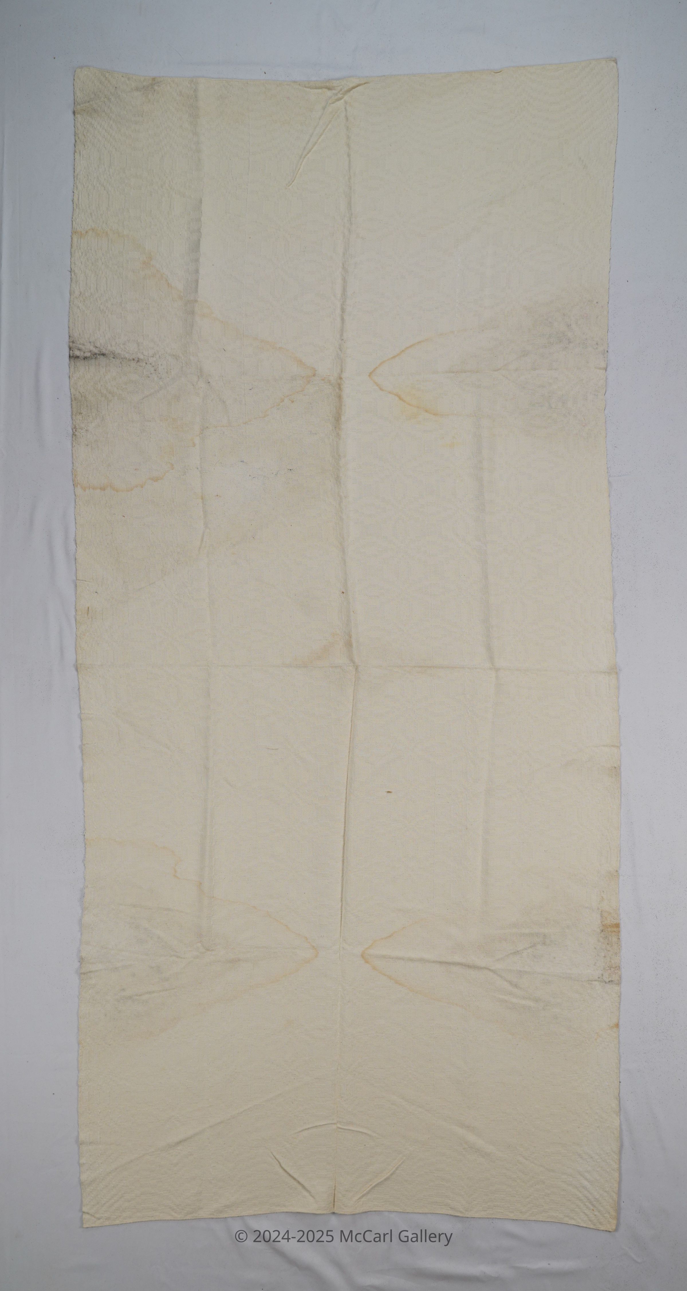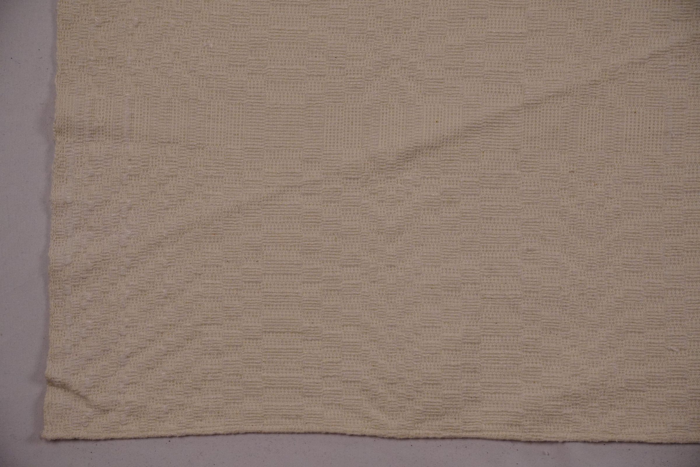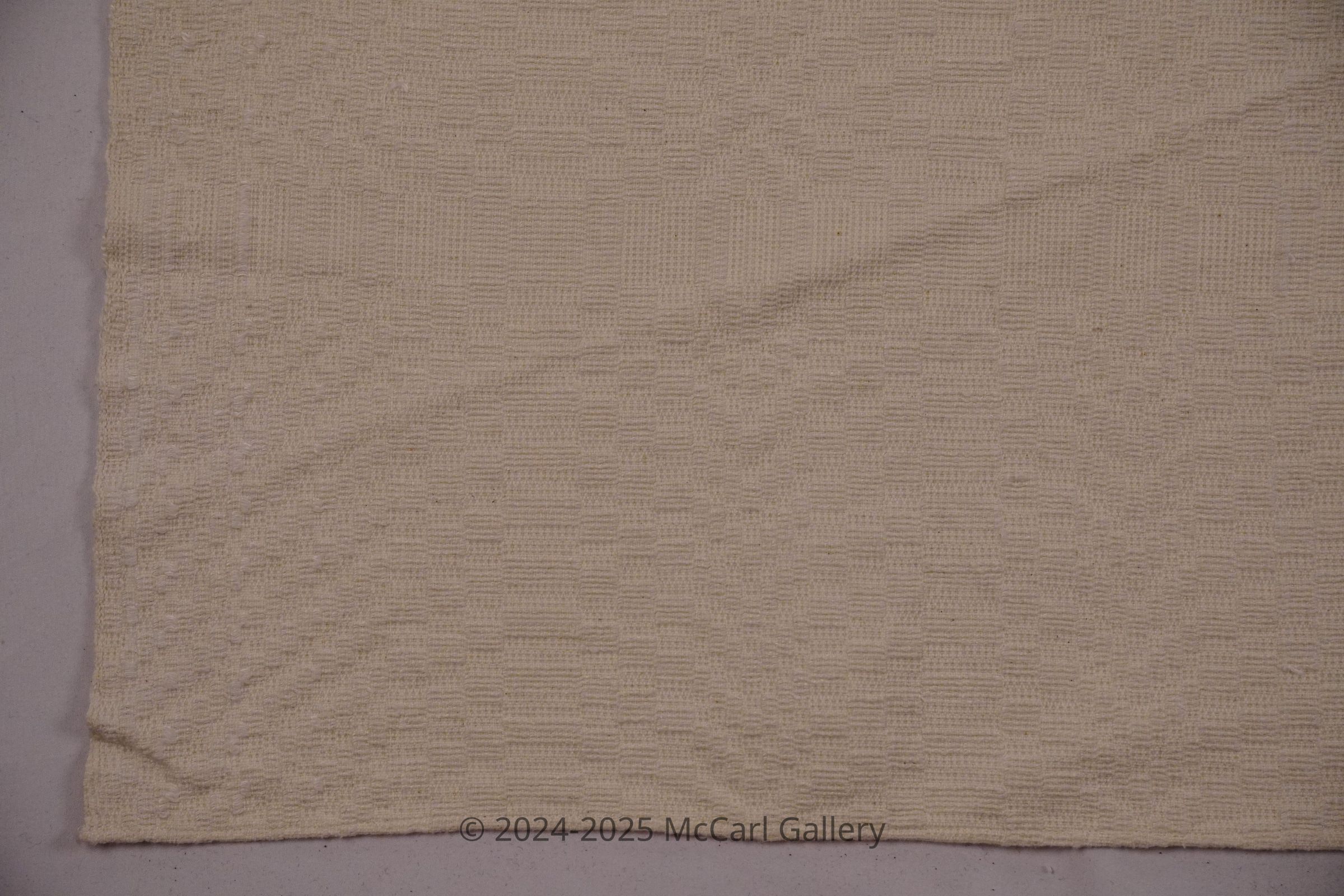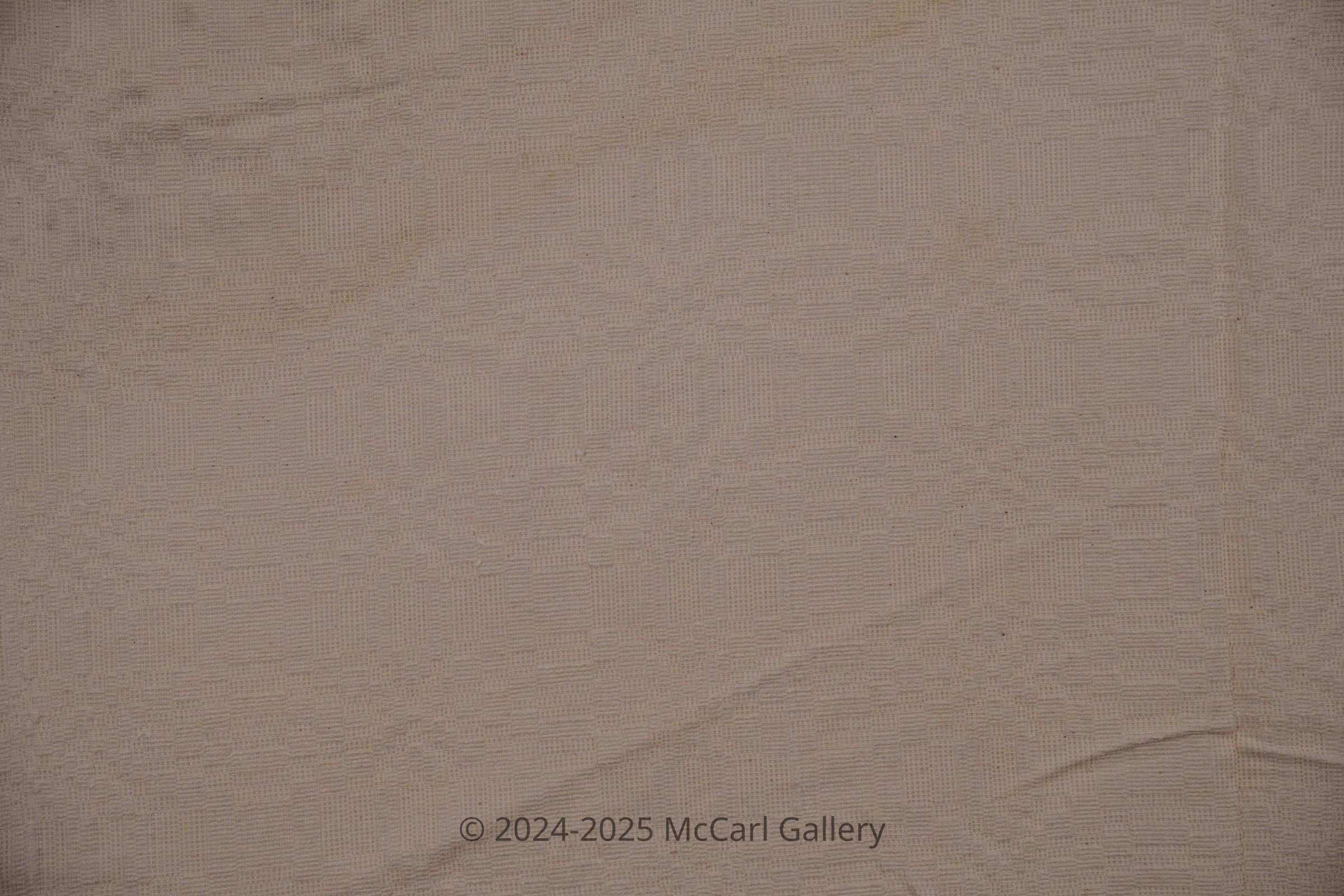 White geometric whitework coverlet; seamless. No fringe or borders.