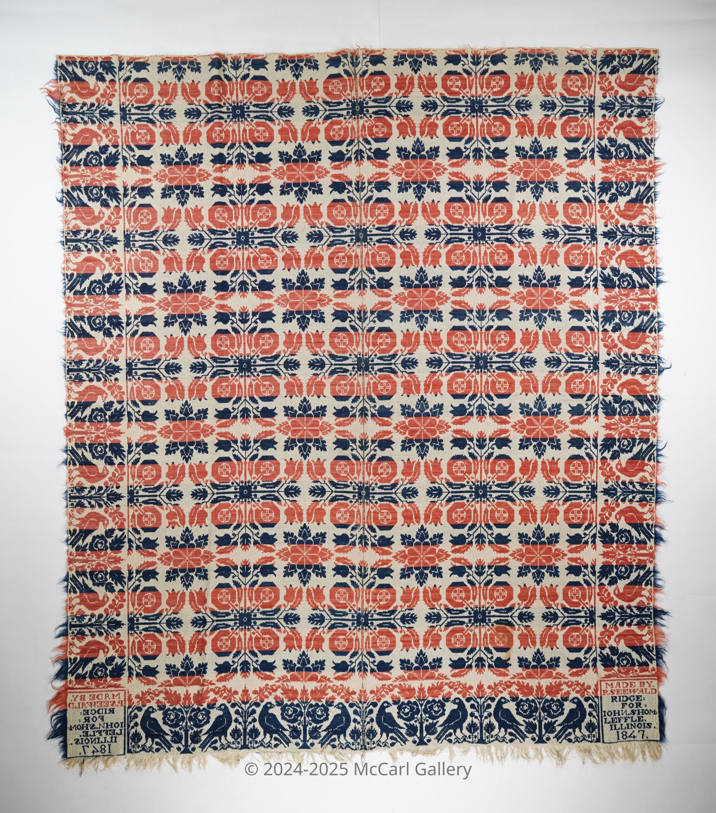 Illinois coverlet by Philip Seewald for John Shomleffle, 1847, tied beiderwandEntry/Object ID