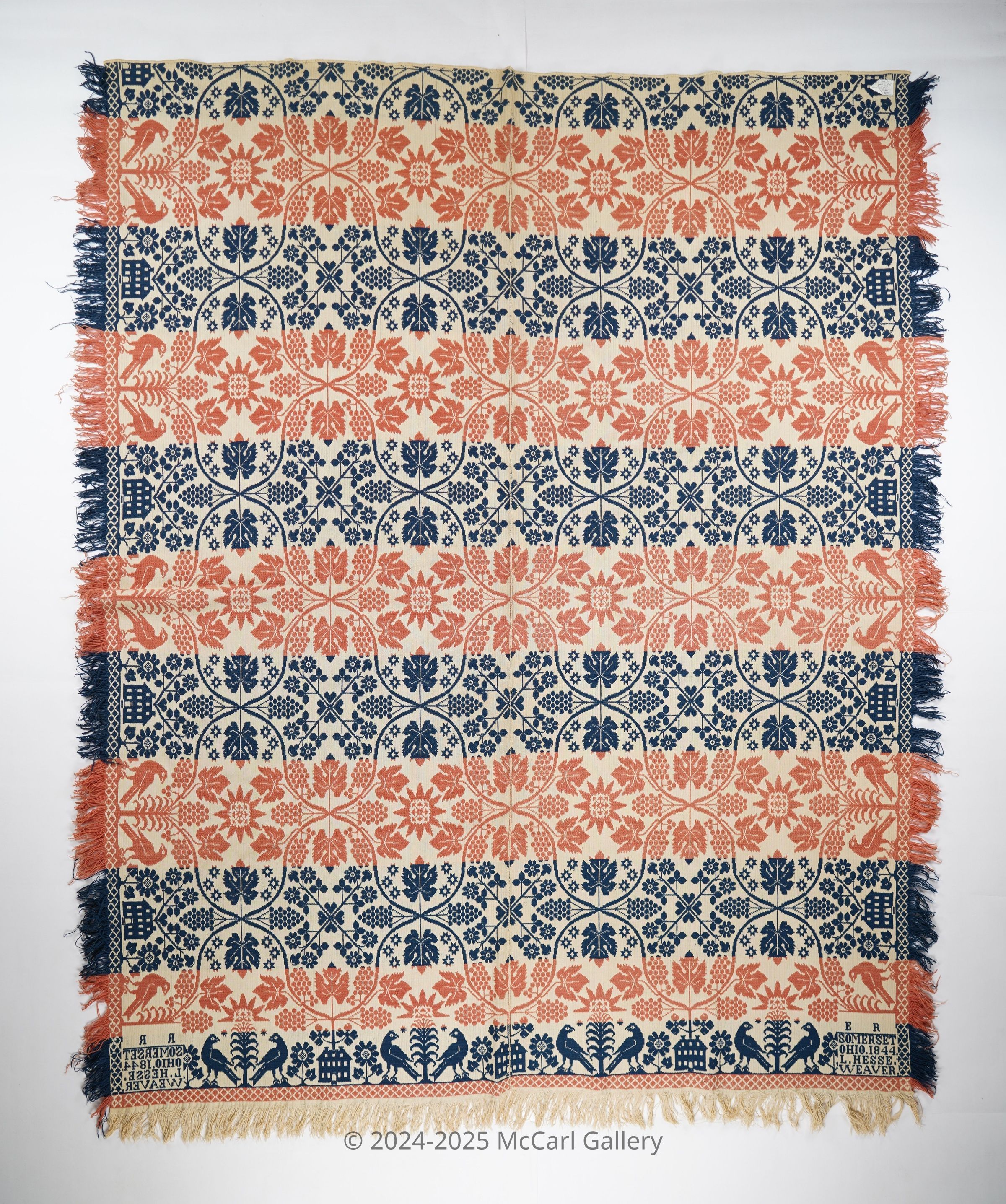Ohio coverlet by L. Hesse for E.R and R.R., 1844, tied beiderwandEntry/Object ID