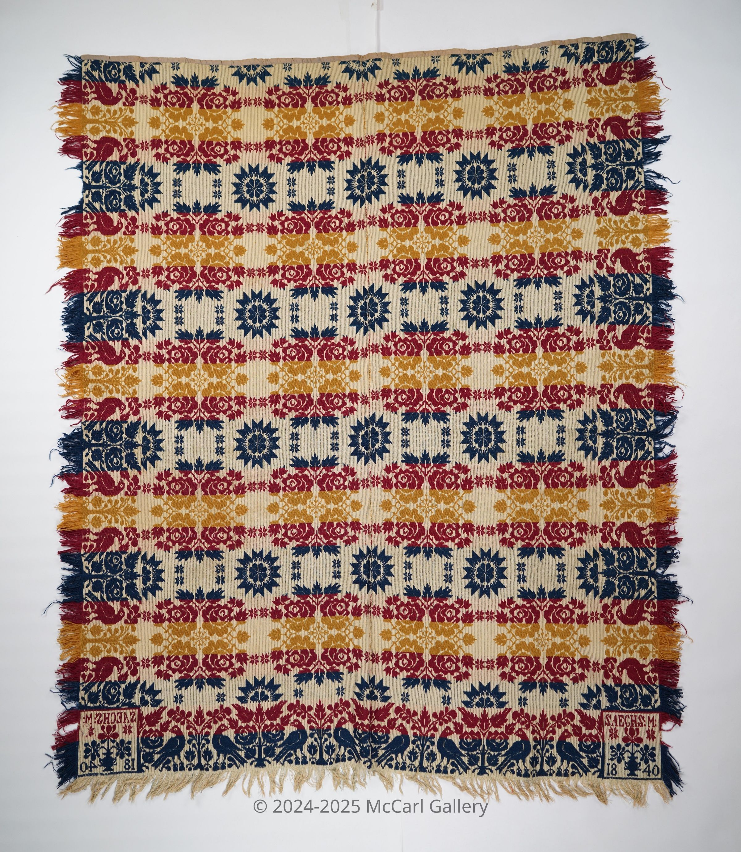 Ohio coverlet by M. Saechs, 1840, tied beiderwandEntry/Object ID