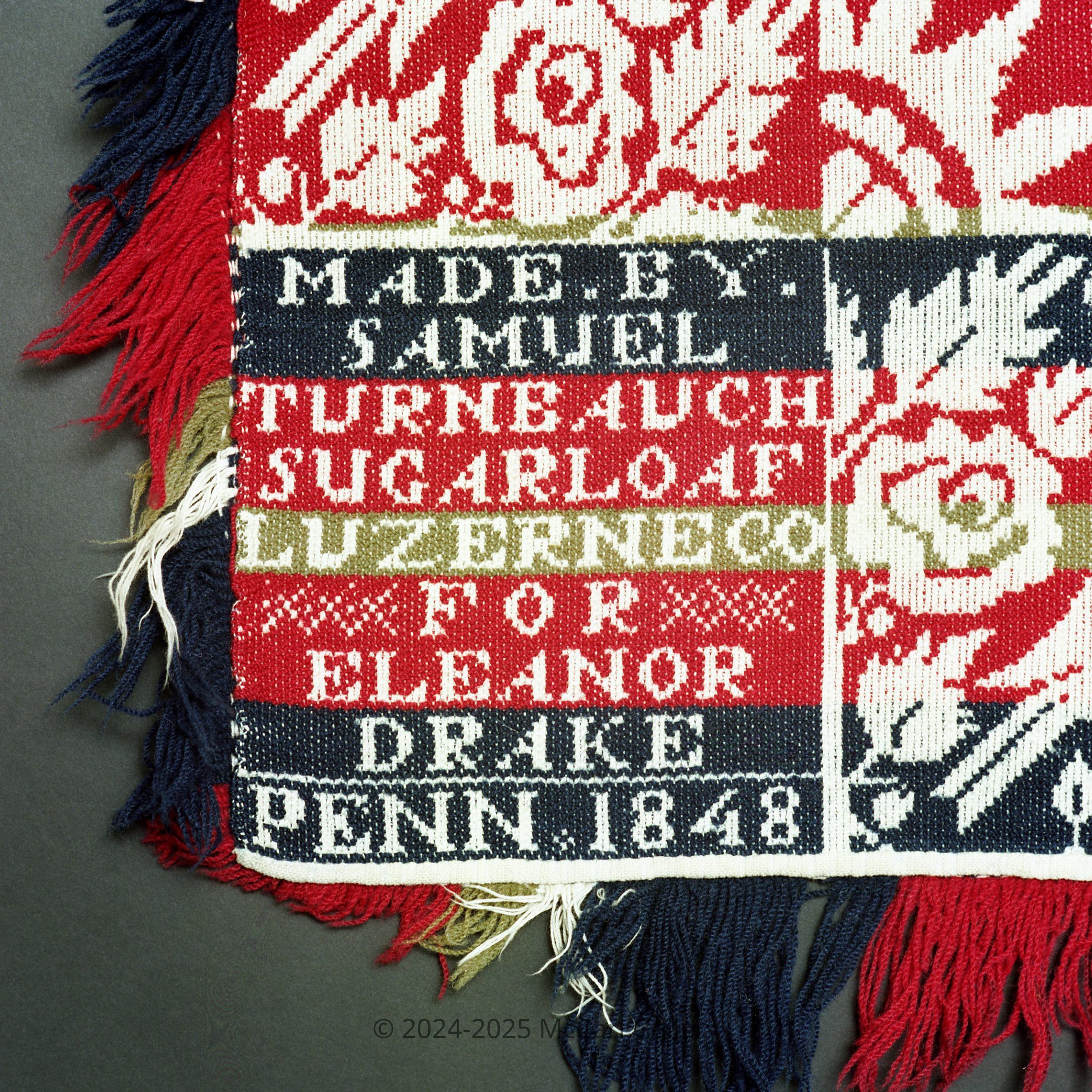 MADE.BY./SAMUEL/TURNBAUCH/SUGARLOAF/LUZERNE CO/FOR/ELEANOR/DRAKE/PENN.1848Material/Technique