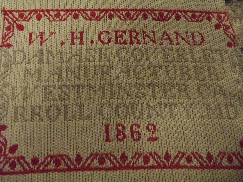 W.H.GERNAND/DAMASK COVERLET/MANUFACURER/WESTMINSTER CA/RROLL COUNTY.MD/1862Other Names and Numbers