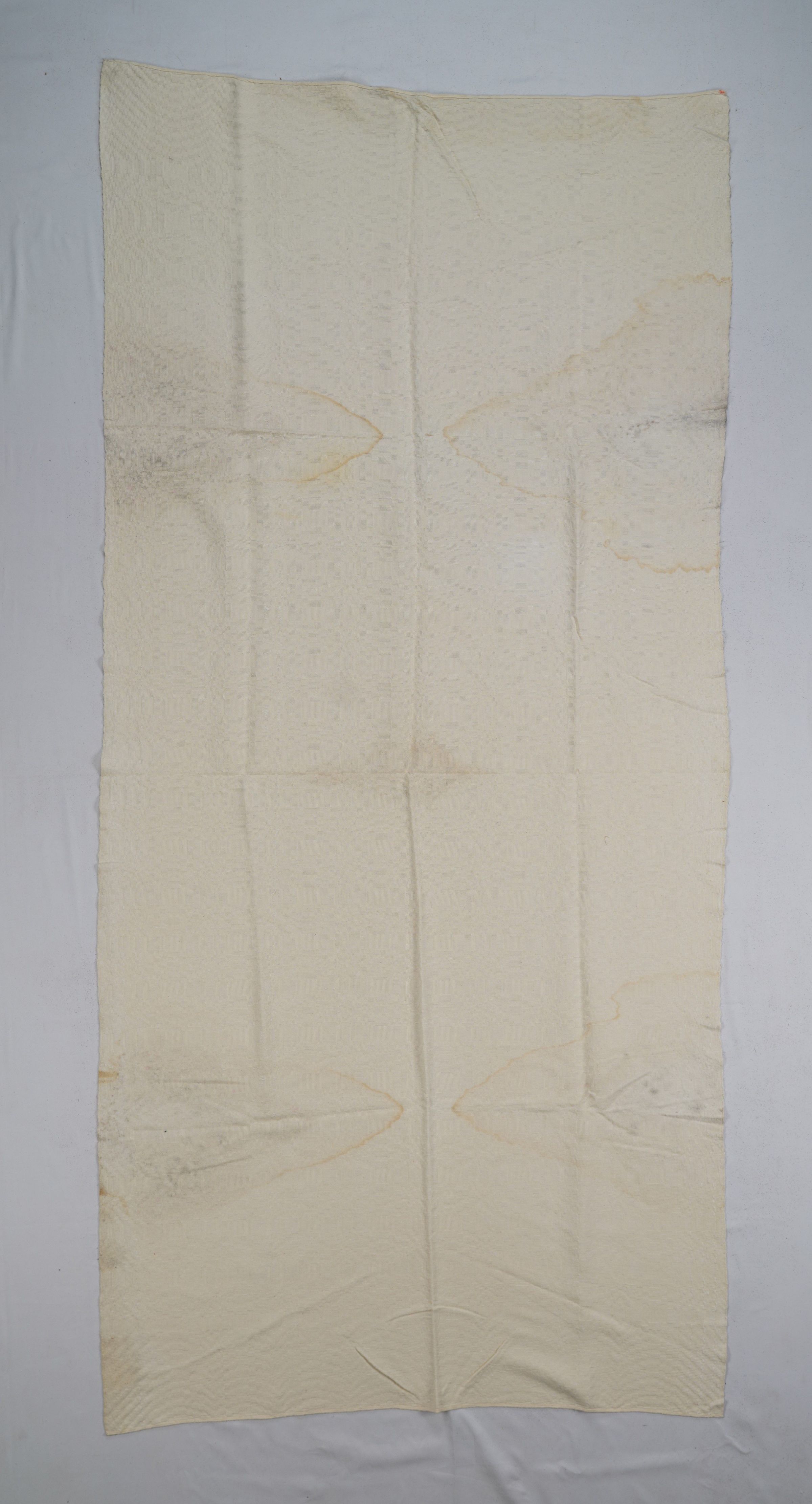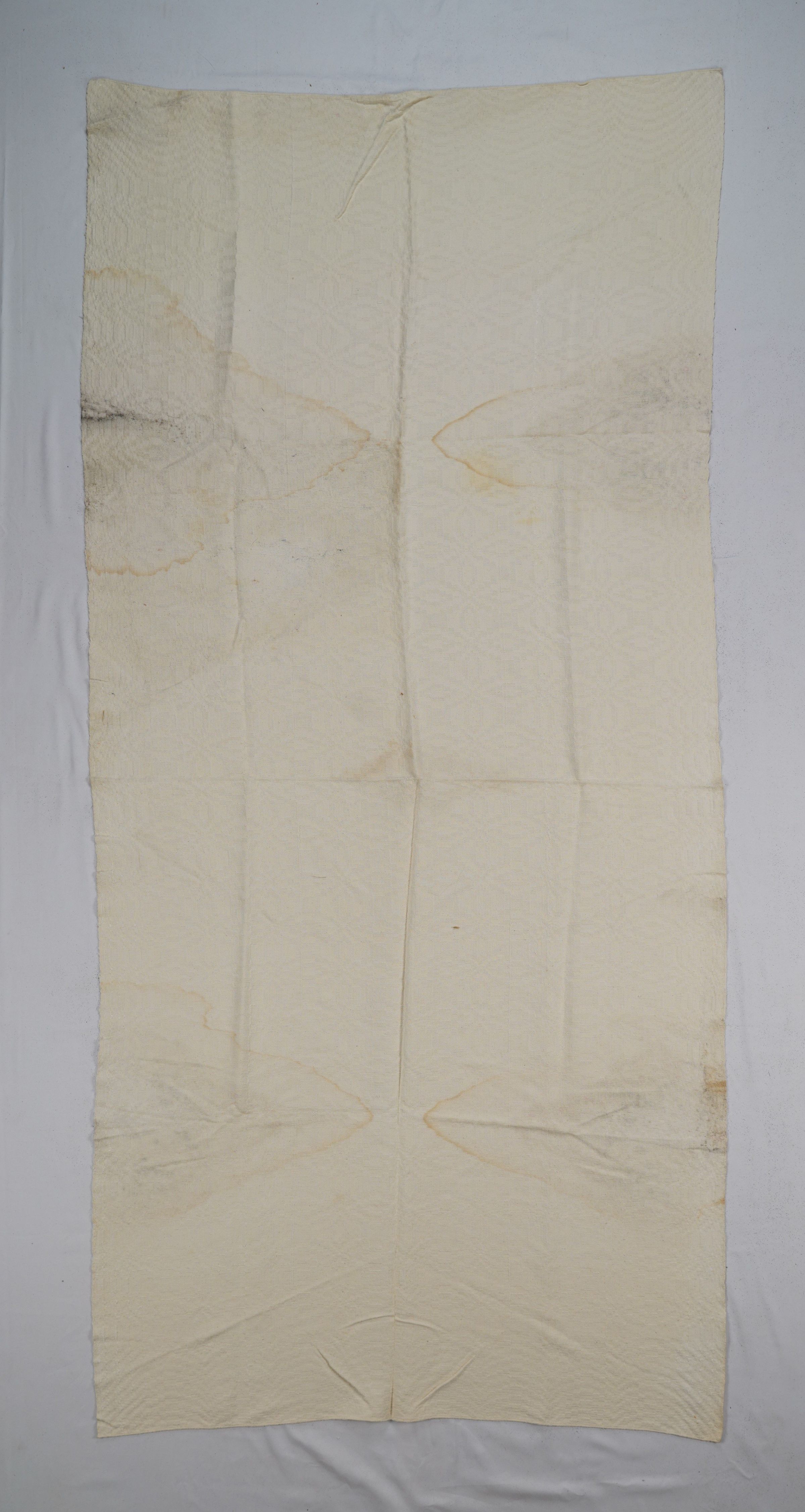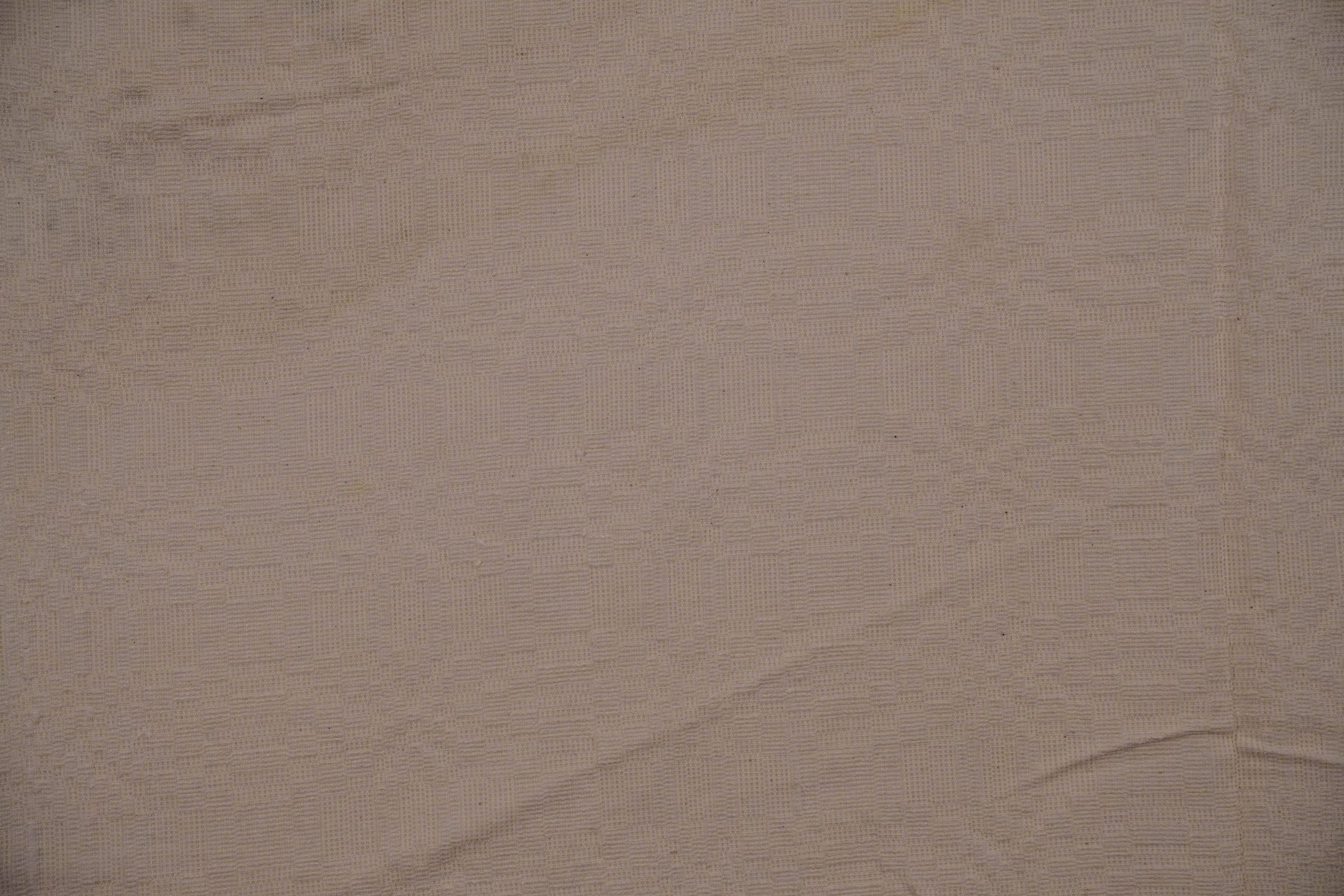 White geometric whitework coverlet; seamless. No fringe or borders.