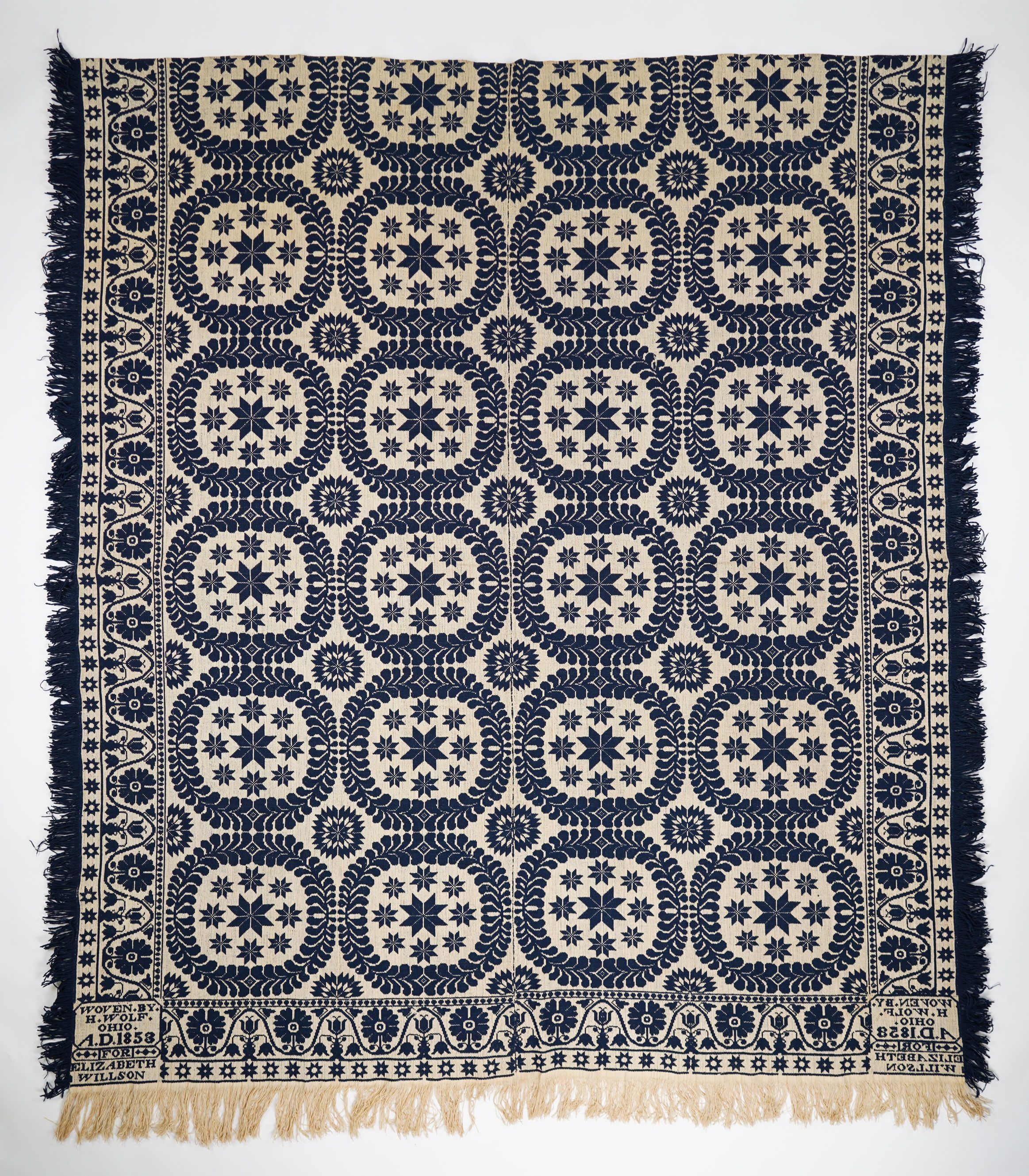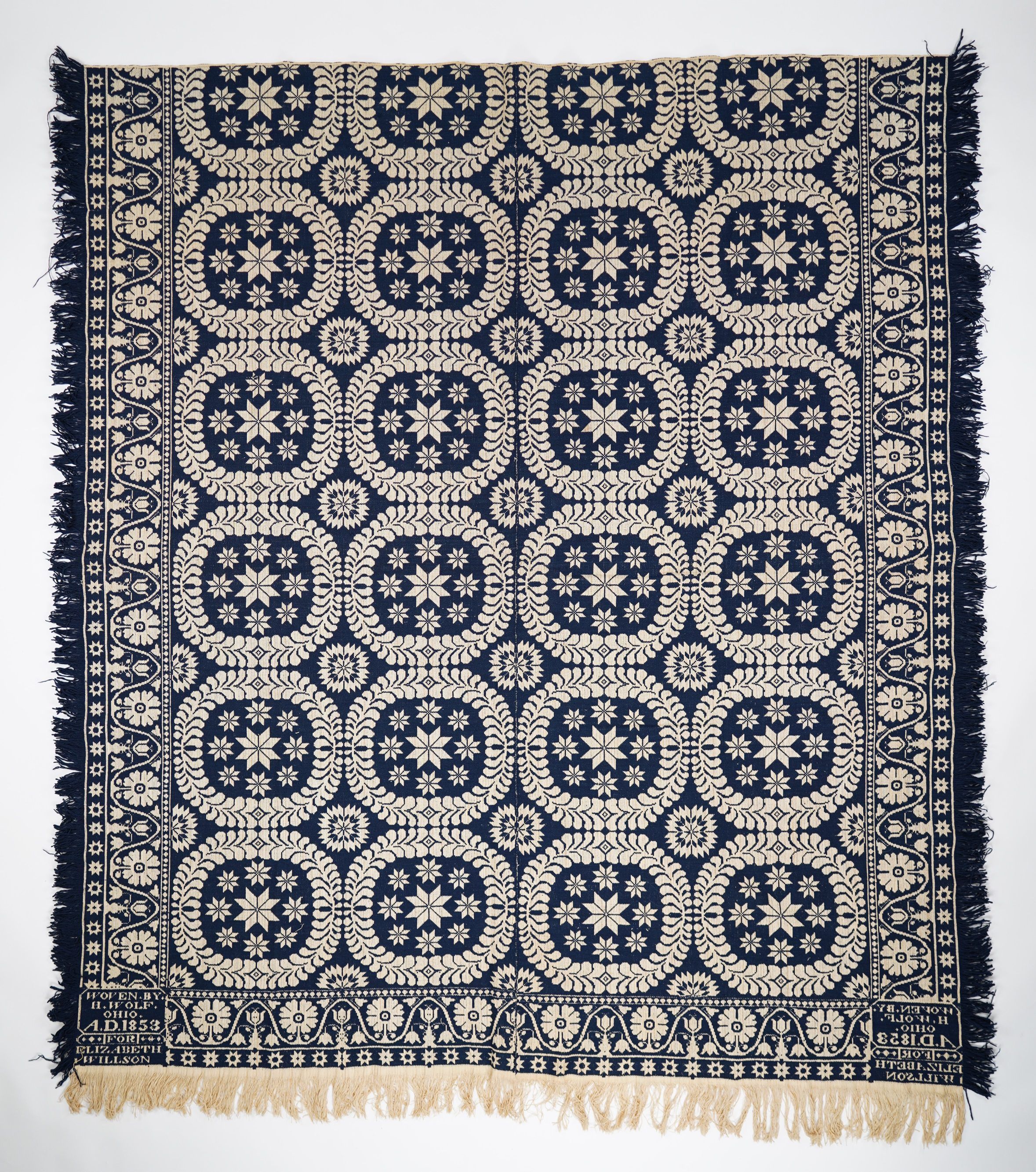 WOVEN.BY./H.WOLF./OHIO./A.D.1853/FOR/ELIZABETH/WILLSONOther Names and Numbers
