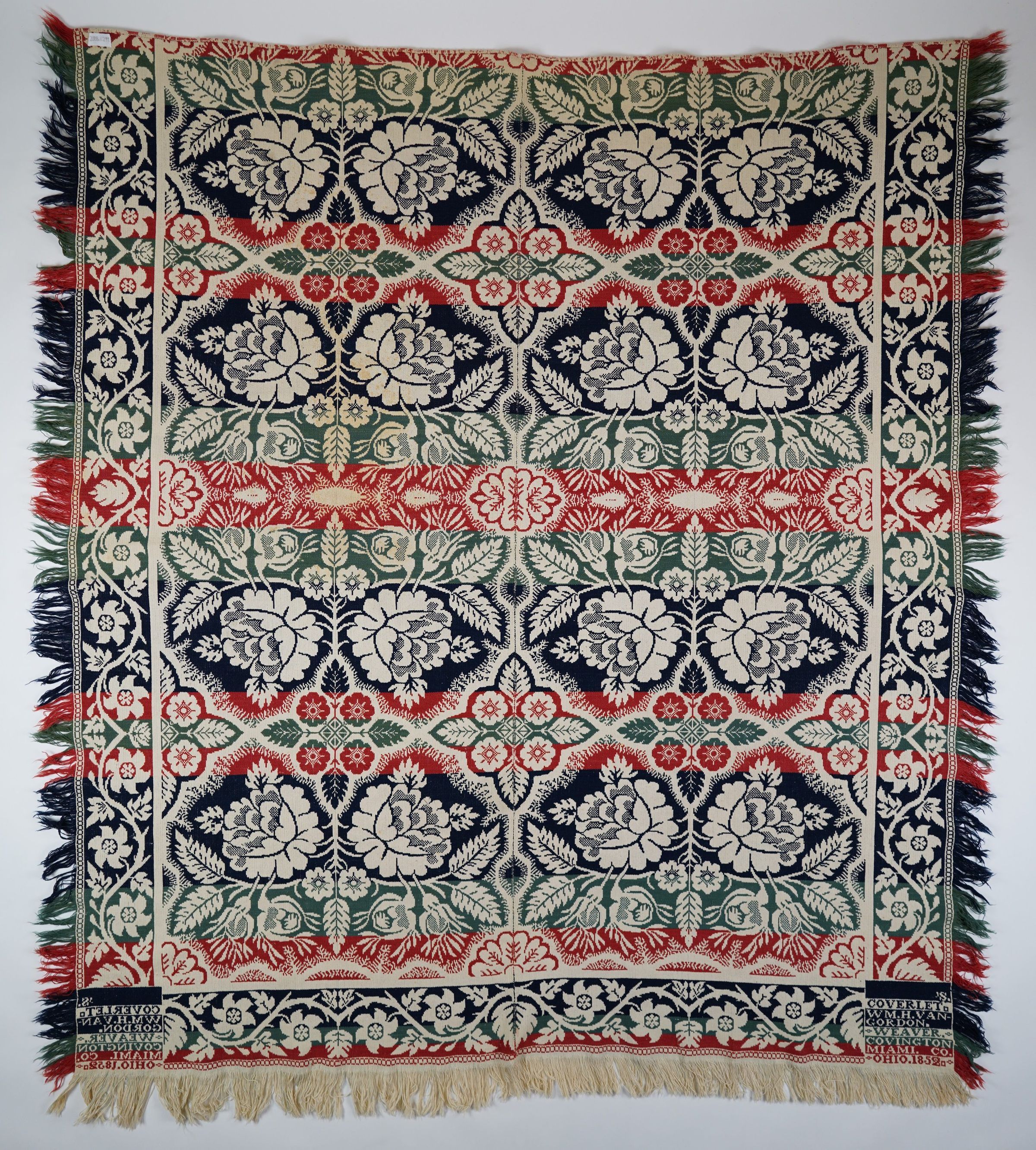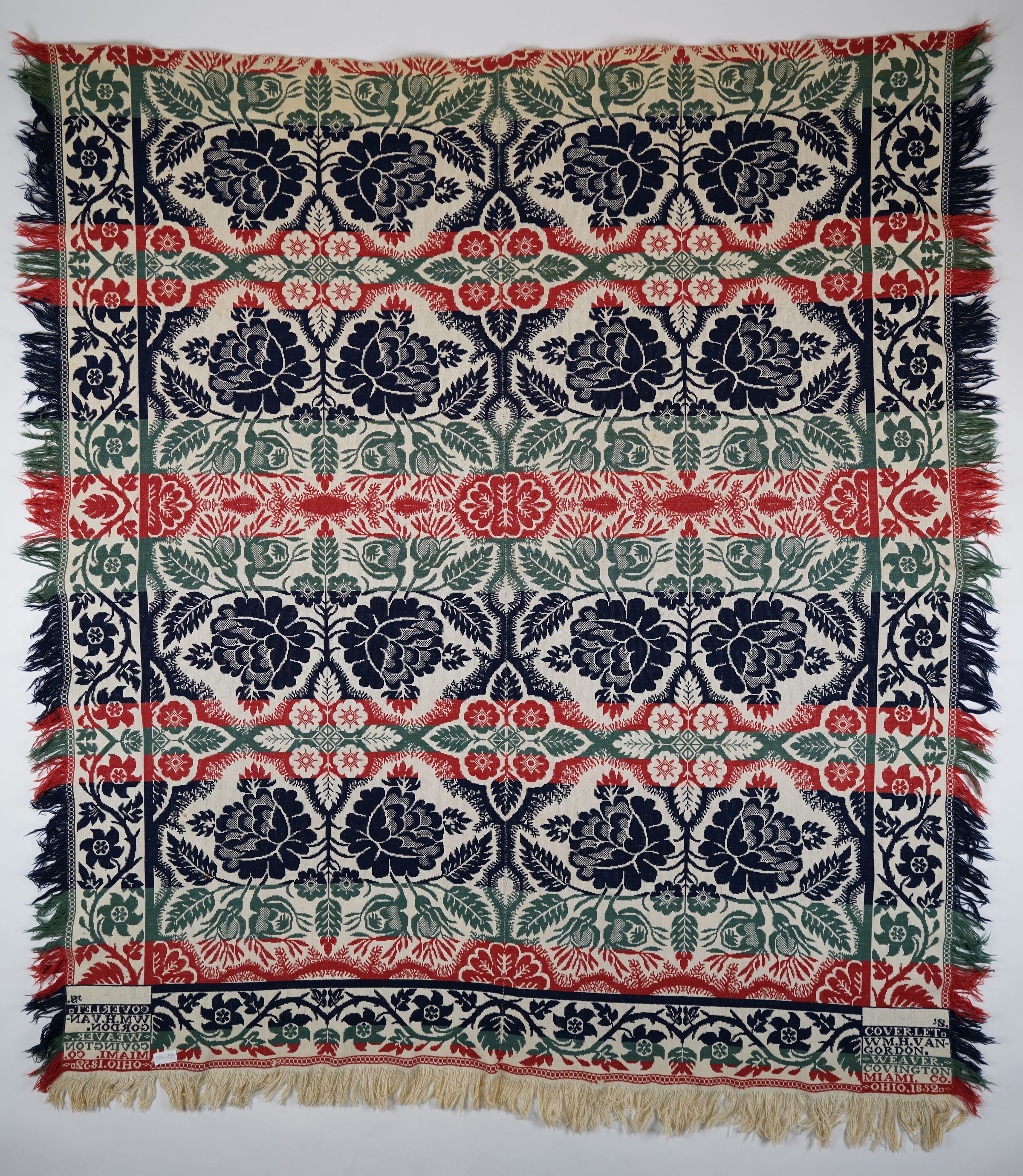 'S./COVERLET./WM.H.VAN/GORDON./WEAVER/COVINGTON/MIAMI. CO./OHIO.1852.Material/Technique