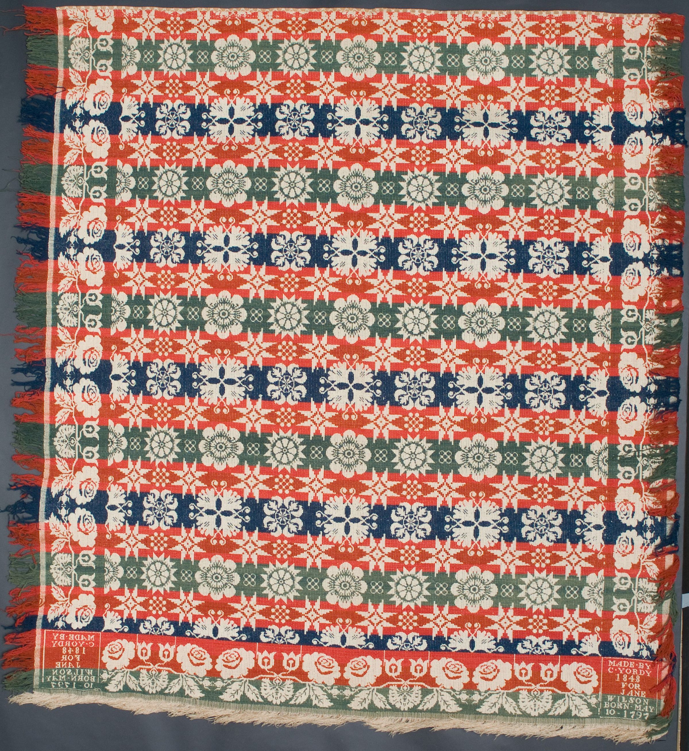 MADE.BY/C.YORDY/1848/FOR/JANE/WILSON/BORN-MAY/10/1797Material/Technique